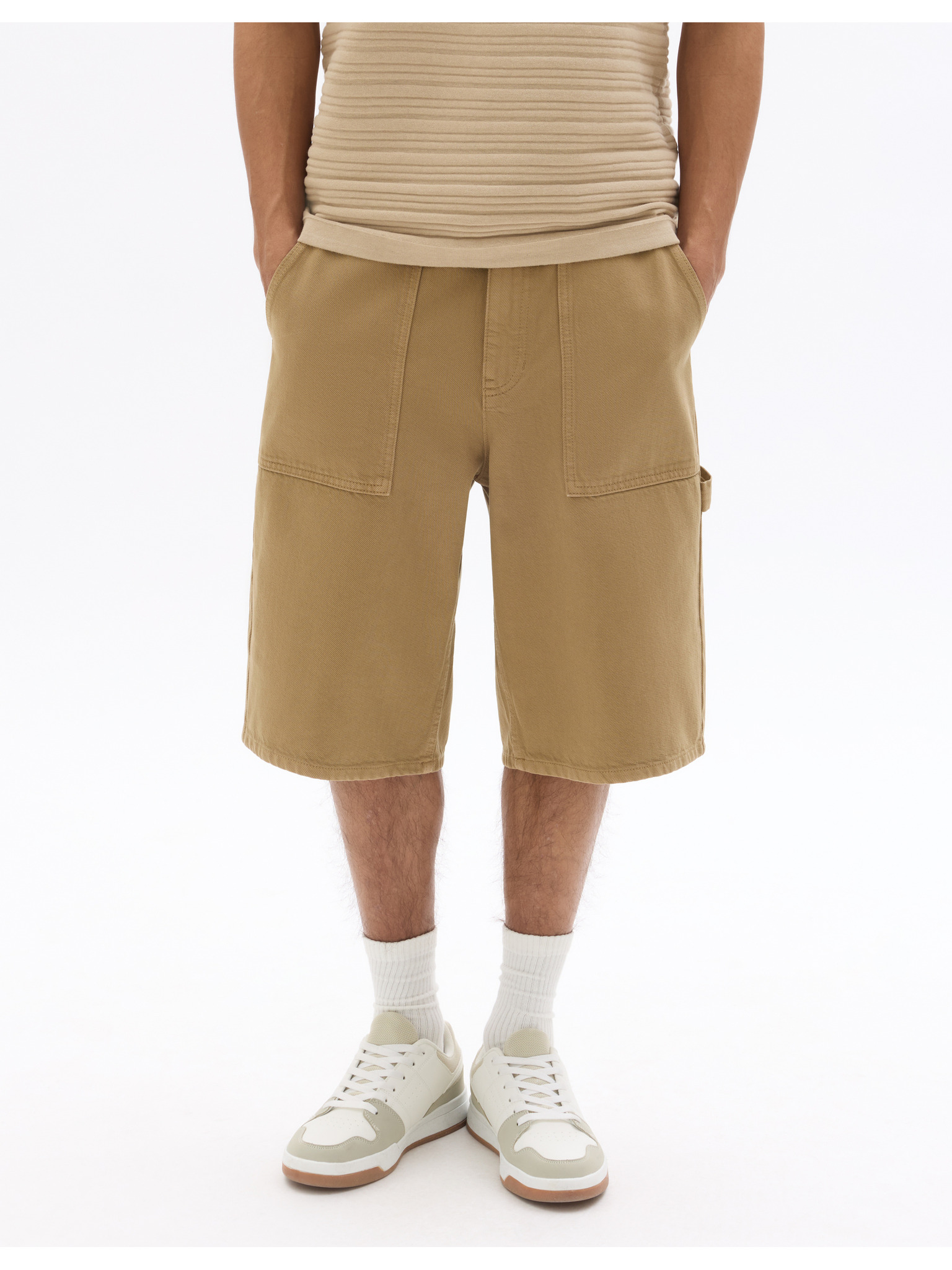 Moške pletene kratke hlače s prilagodljivim pasom - bež V1 OM-SRCS-0202 Ombre Clothing