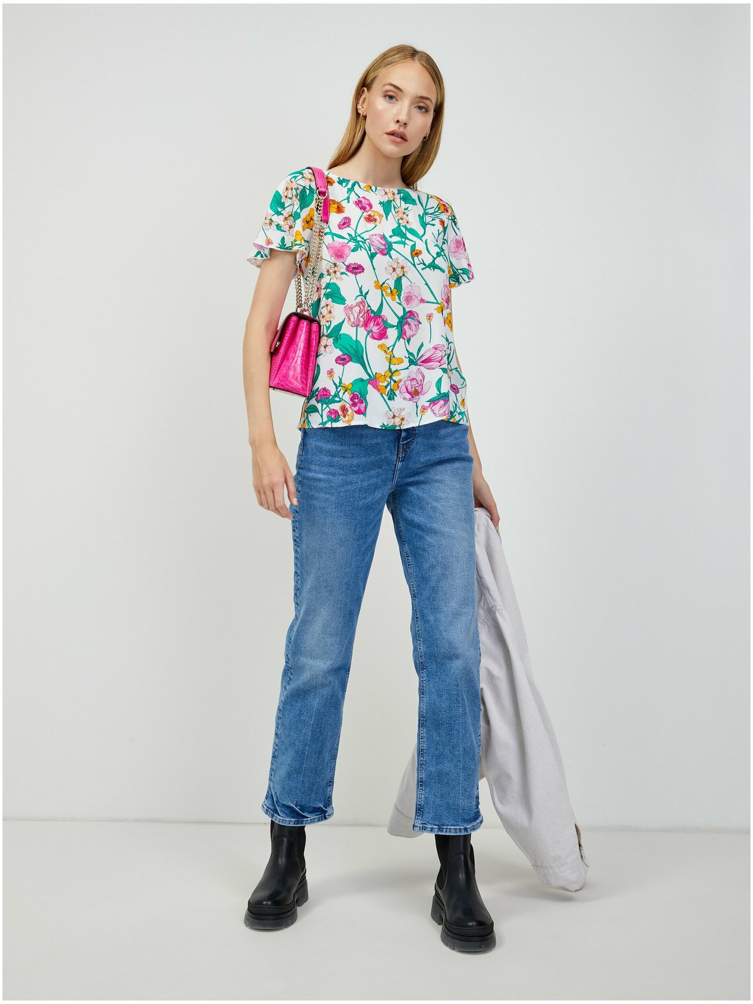 Črna ženska bluza s cvetličnim vzorcem ORSAY