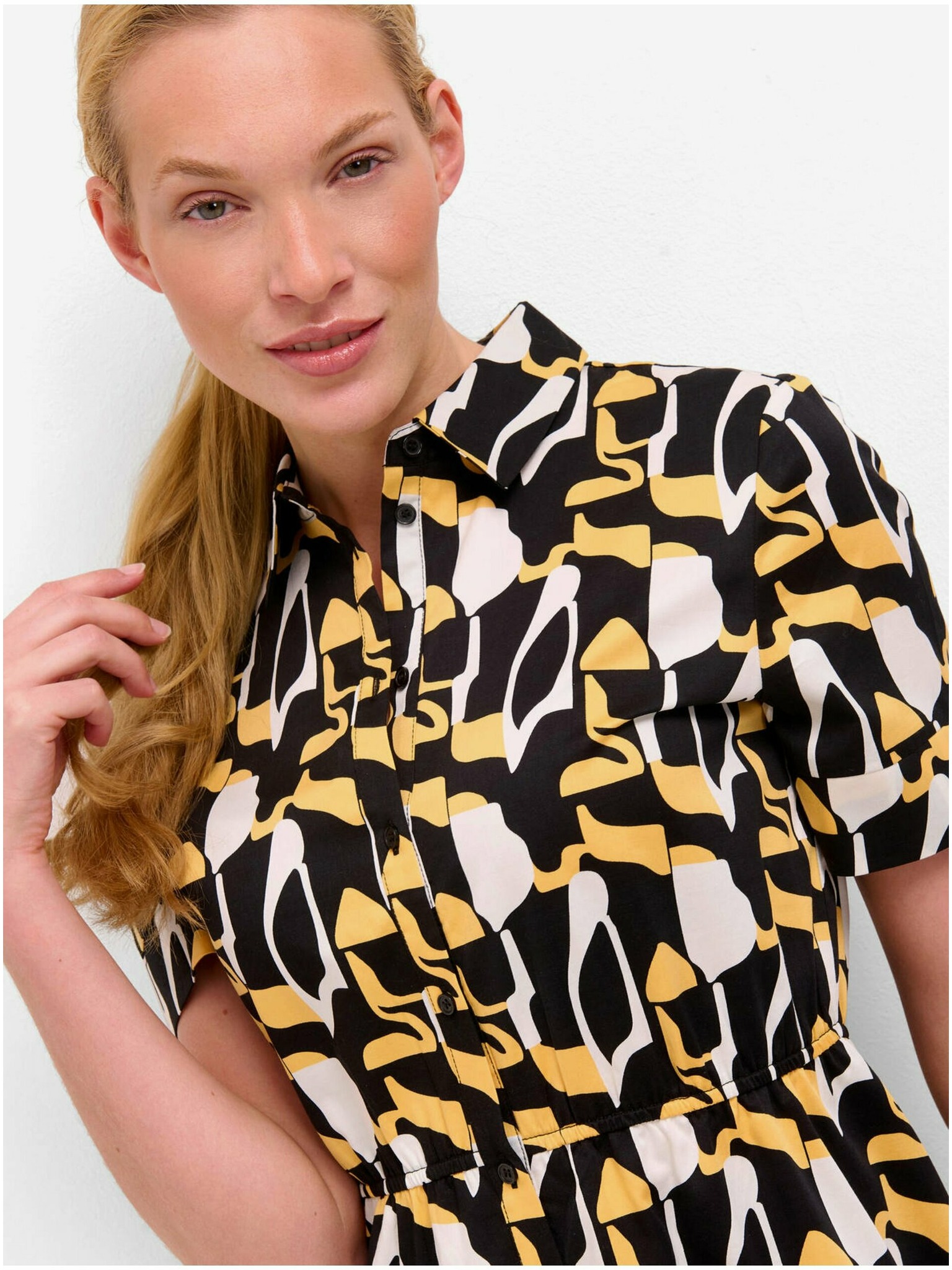Bež-črna ženska vzorčasta srajčna obleka iz semiša ORSAY