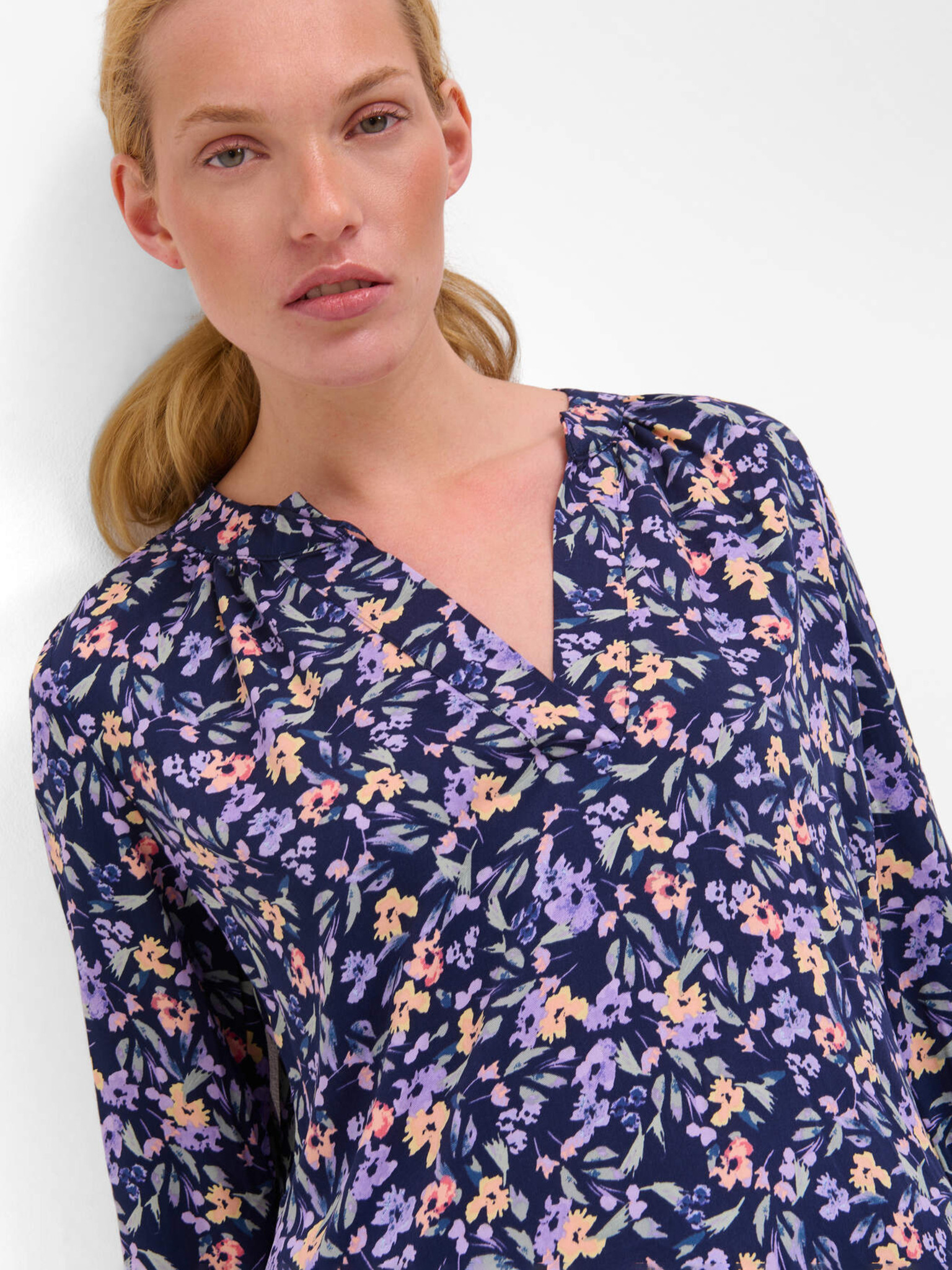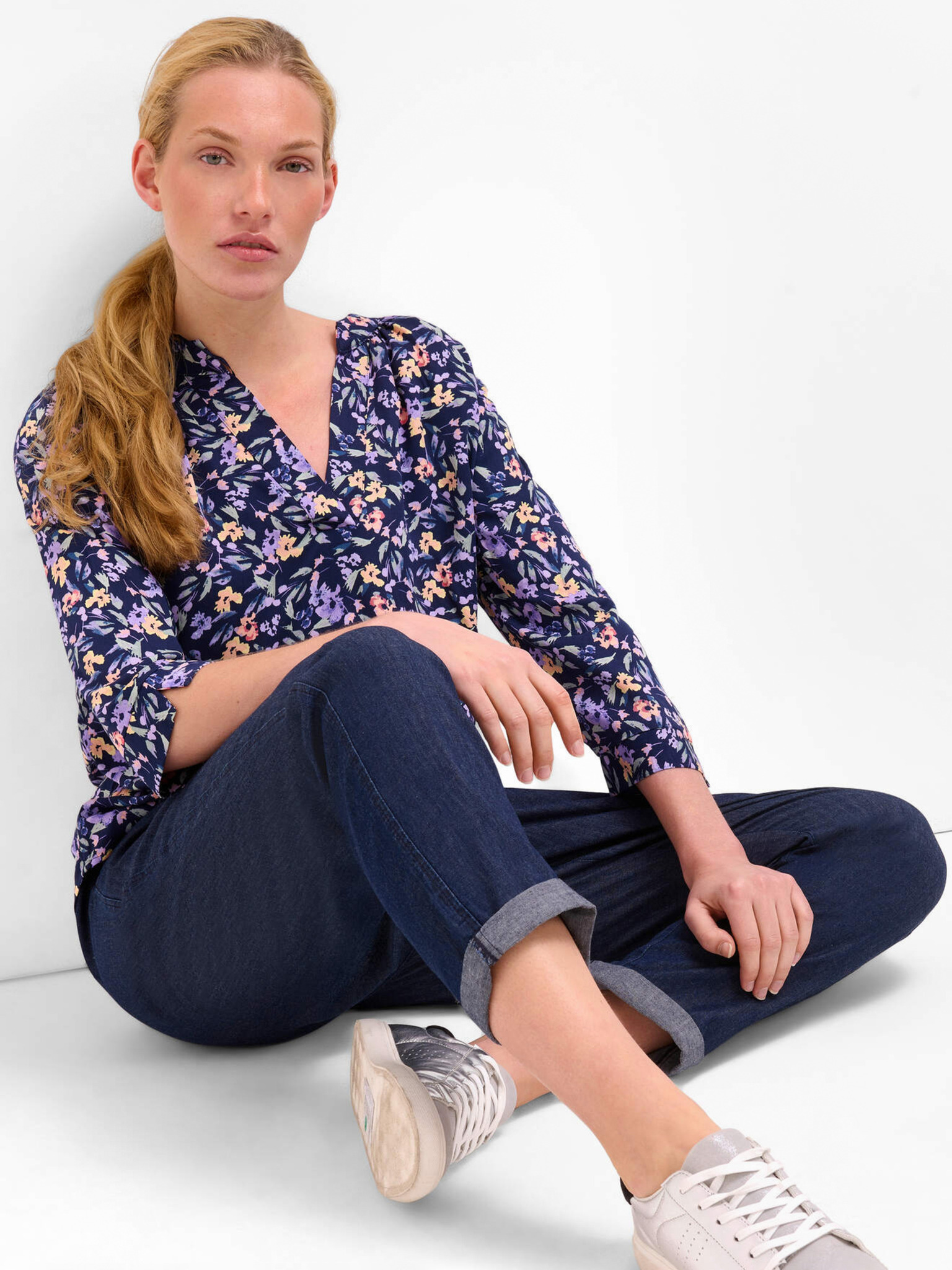 Vijoličasto-modra cvetlična bluza s tričetrtinskimi rokavi ORSAY