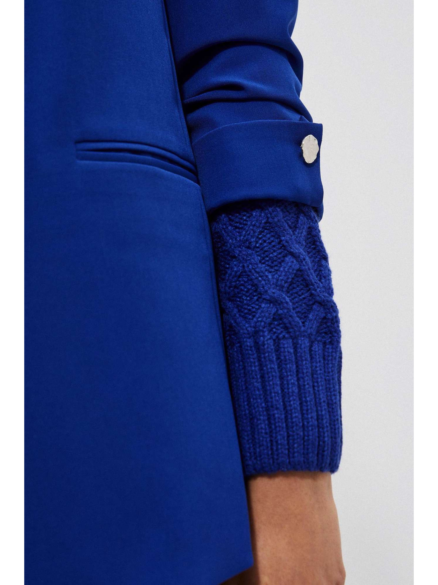 Modra lanena jakna s 3/4 rokavi Moodo