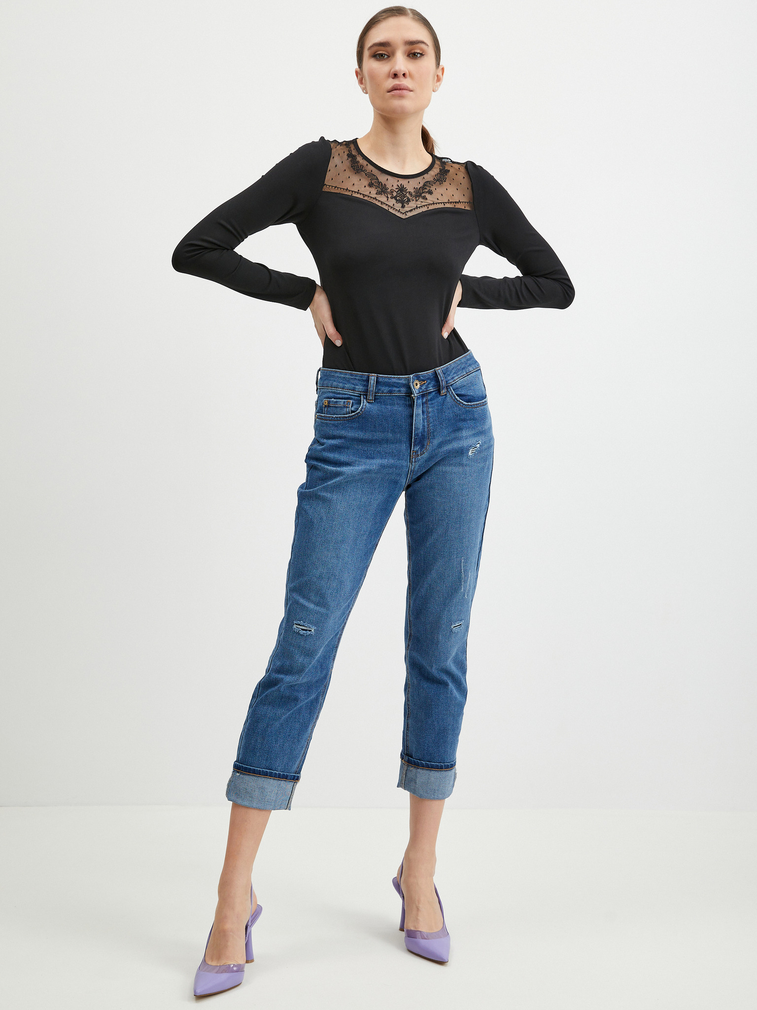 Črn ženski bodi s čipko ORSAY