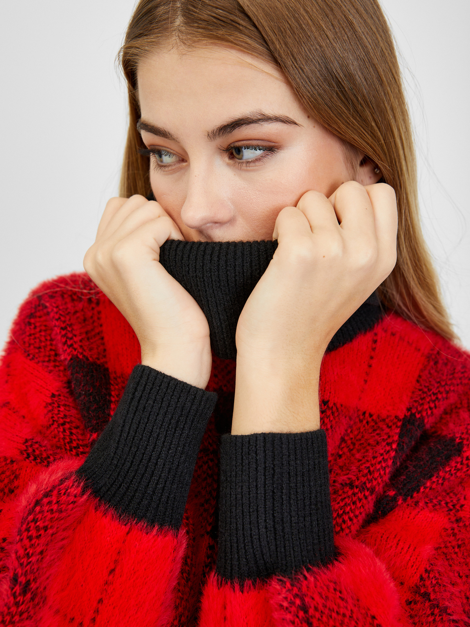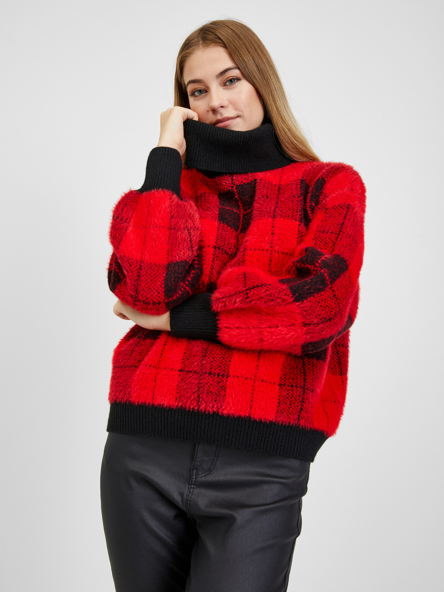Rdeča ženska majica z rolojem in izrezom ORSAY