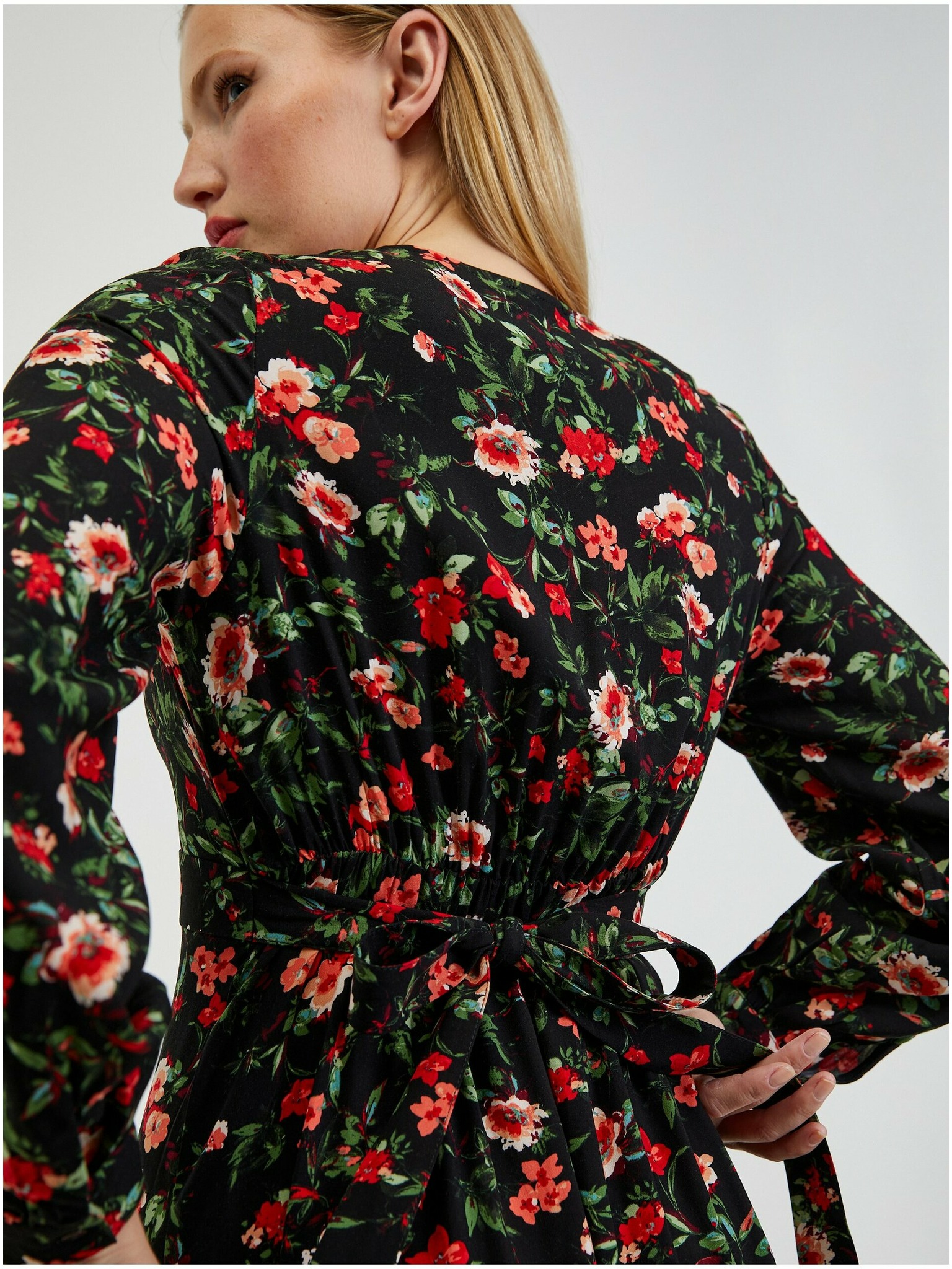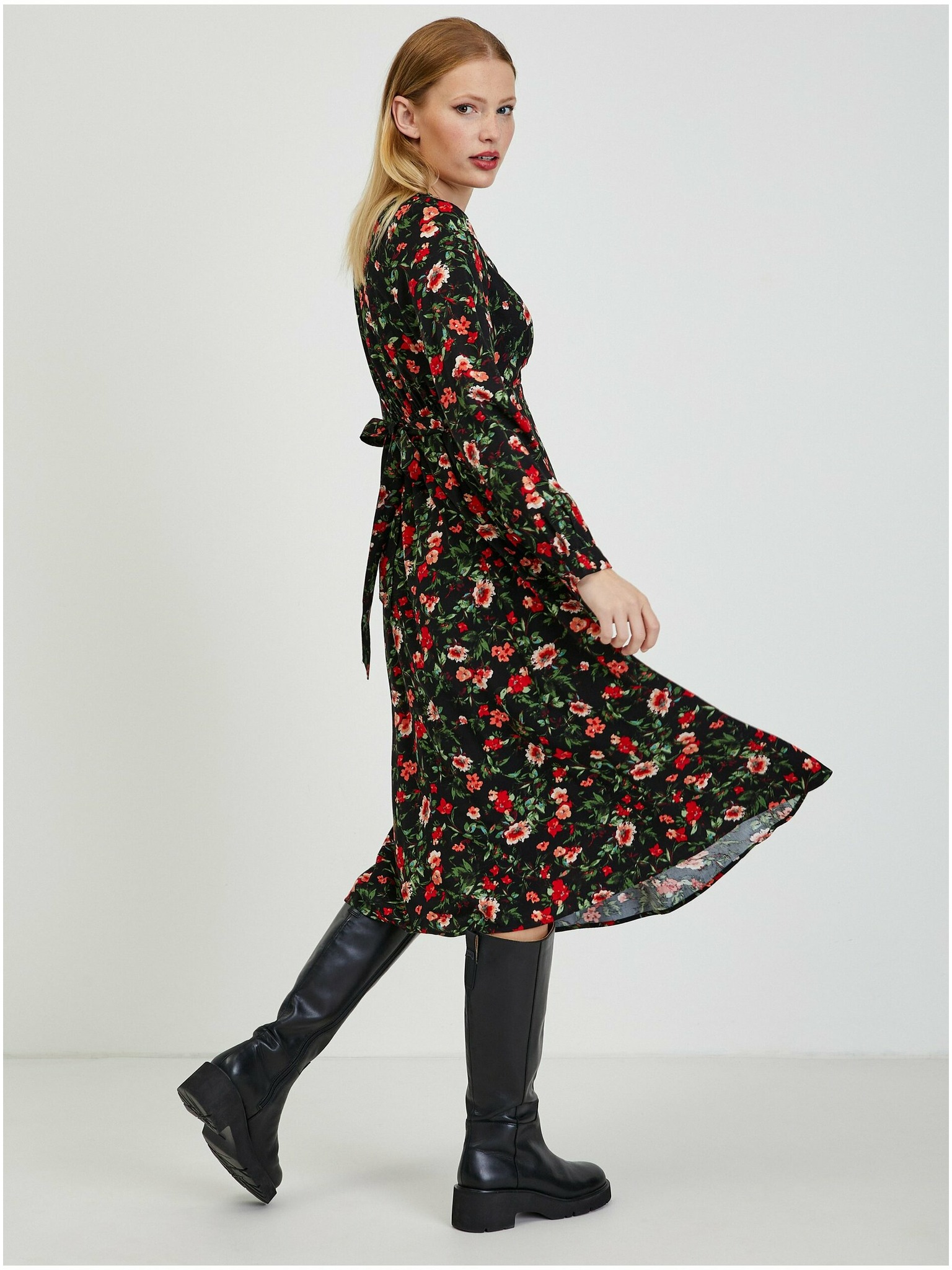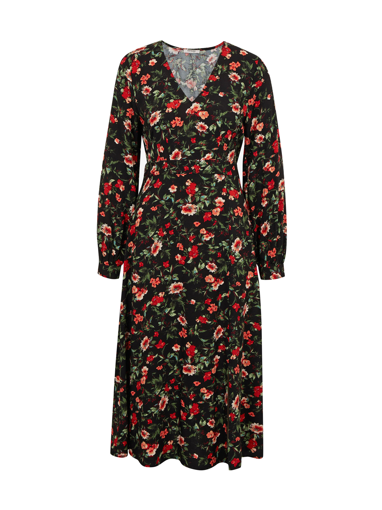 Črno-rožnata ženska cvetlična obleka ORSAY