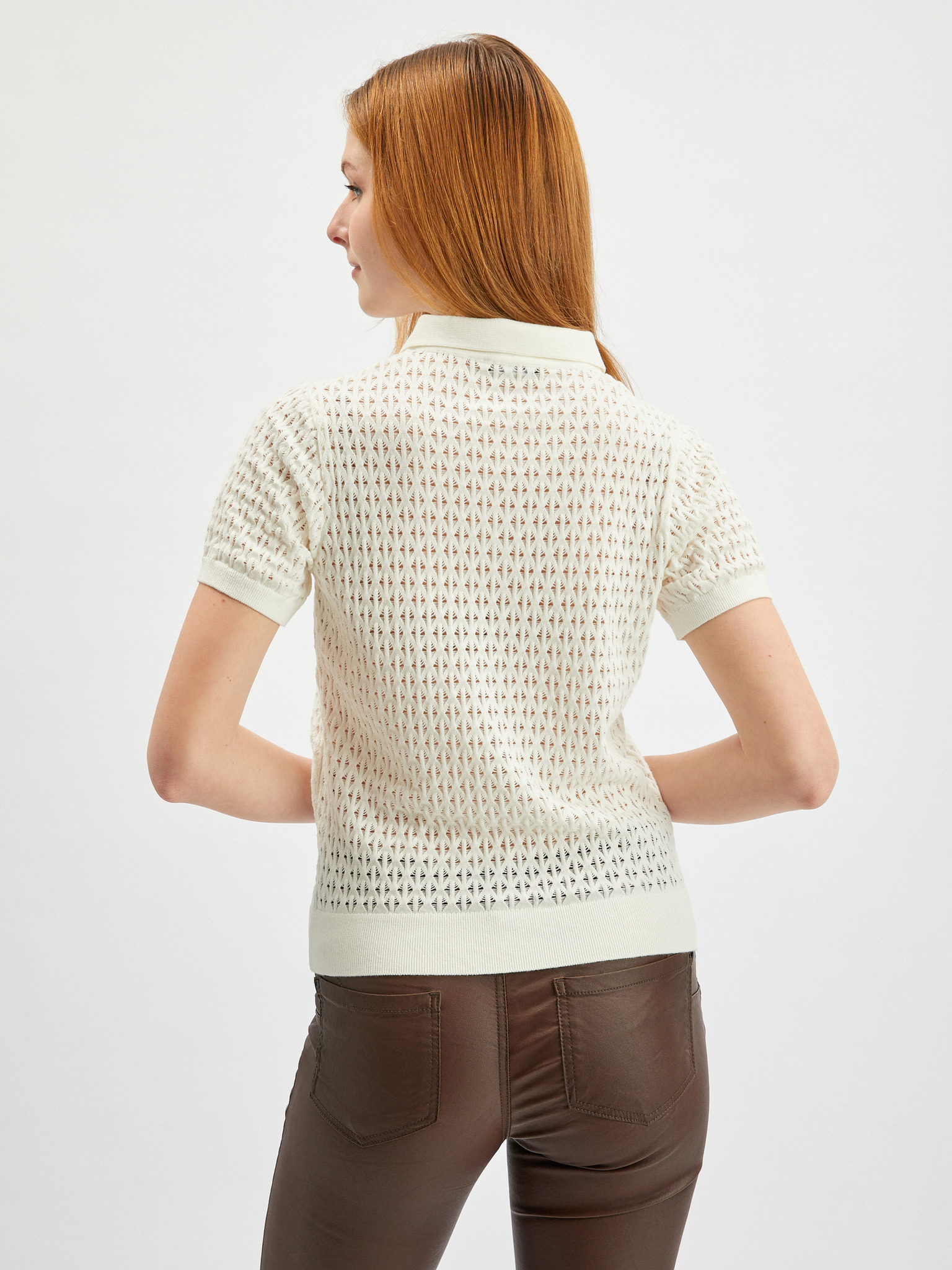 Bel pulover z balončastimi rokavi
