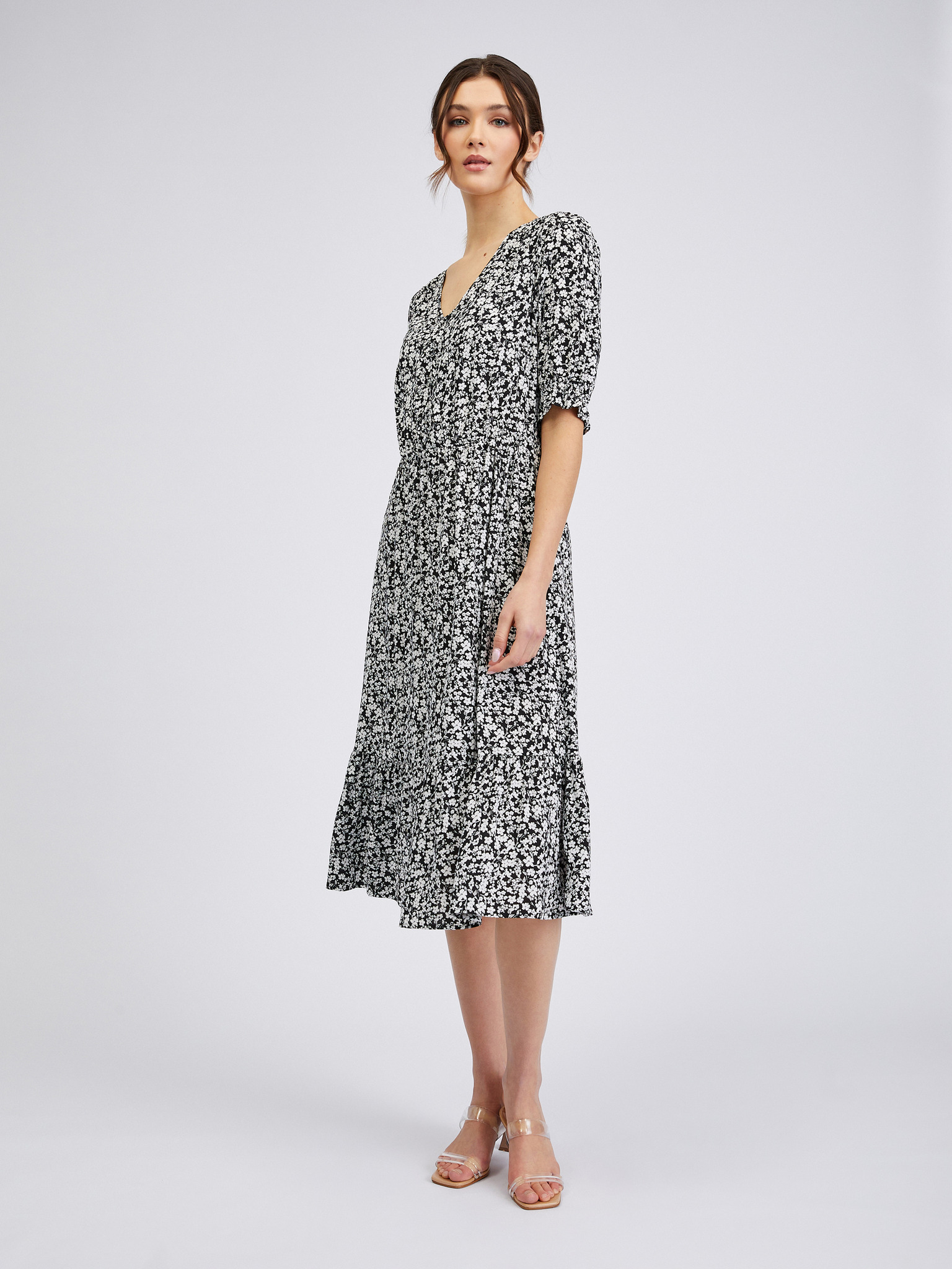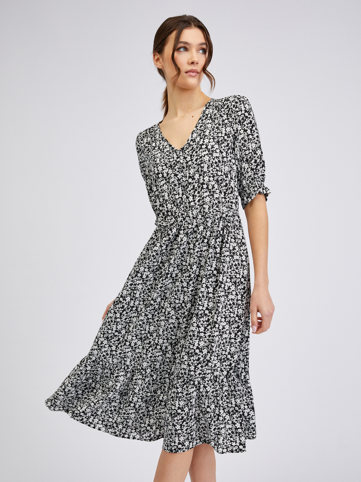 Belo-črna ženska cvetlična obleka ORSAY