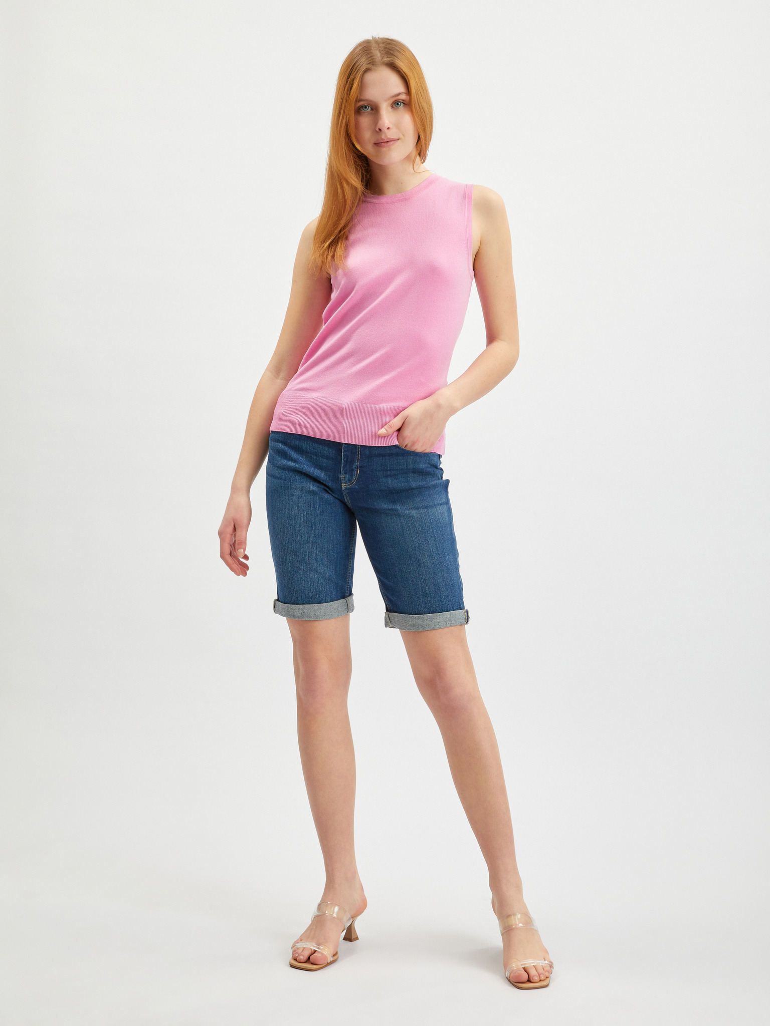 Svetlo roza ženska majica brez rokavov ORSAY