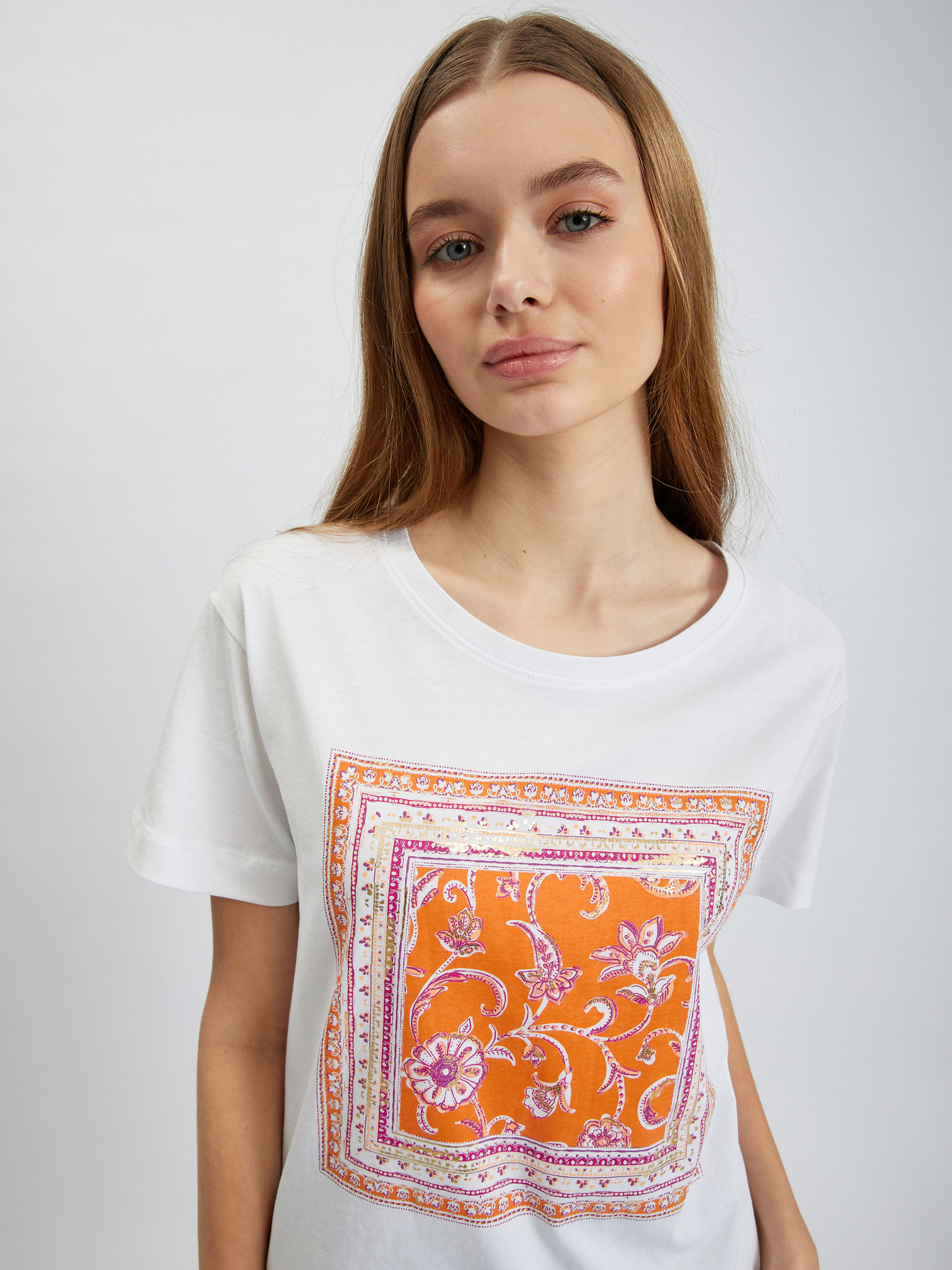 Bela ženska majica z aplikacijo ORSAY