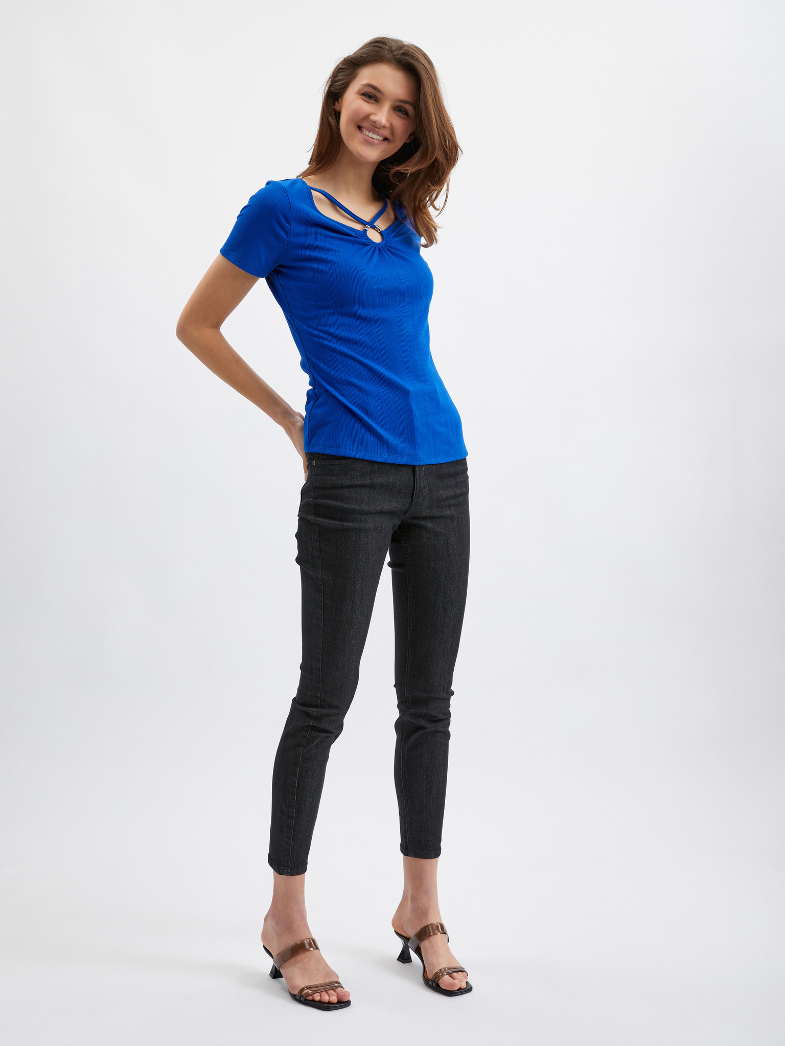 Svetlo modra ženska majica s kratkimi rokavi ORSAY