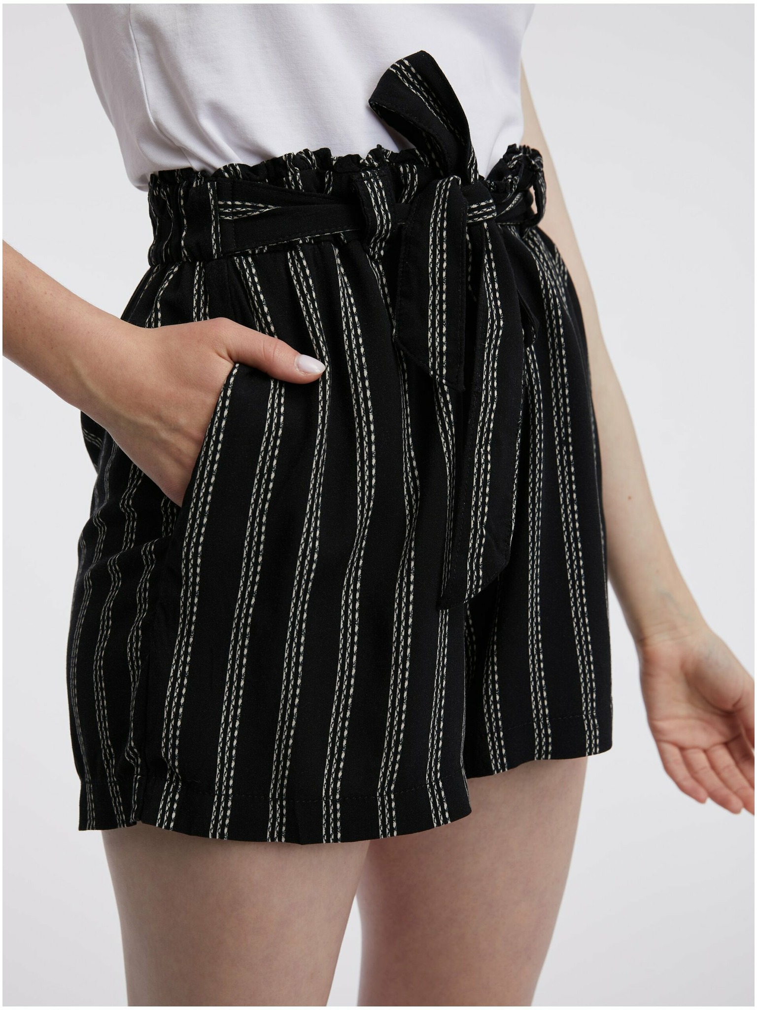Krem-zelene ženske vzorčaste kratke hlače z dodatkom lanu ORSAY