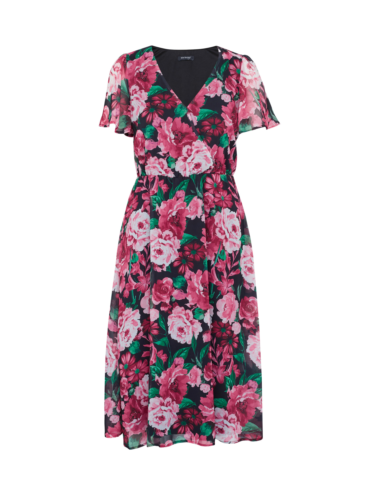 Črno-rožnata ženska cvetlična obleka ORSAY