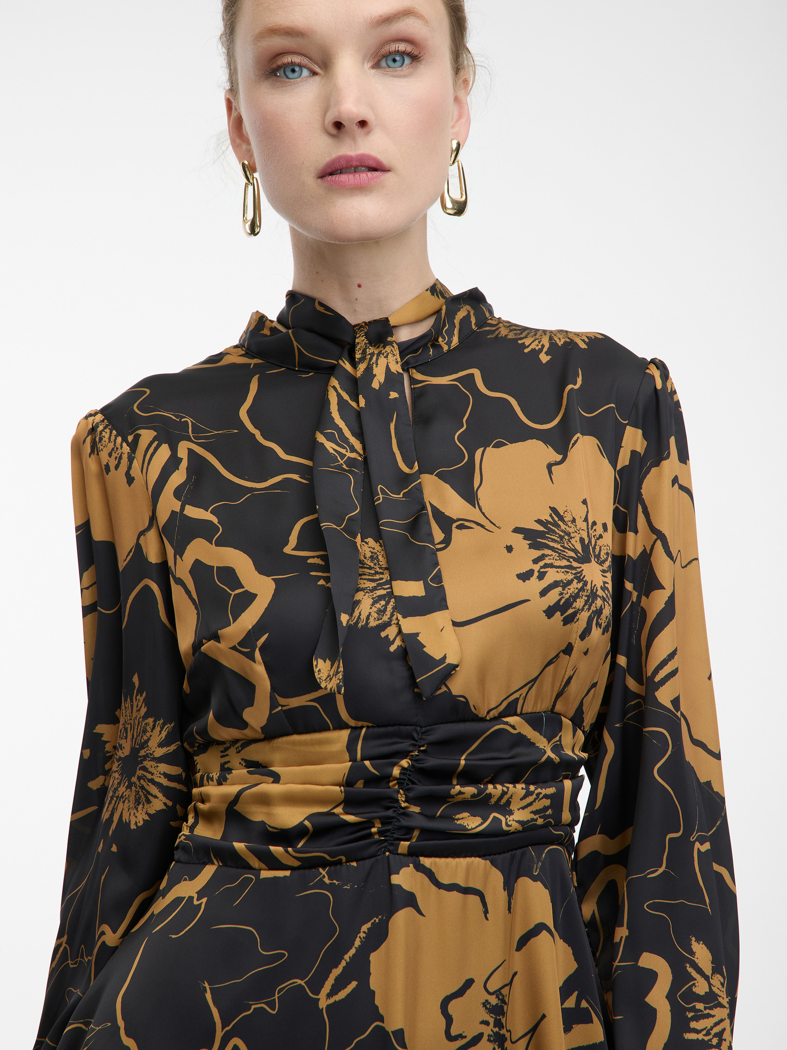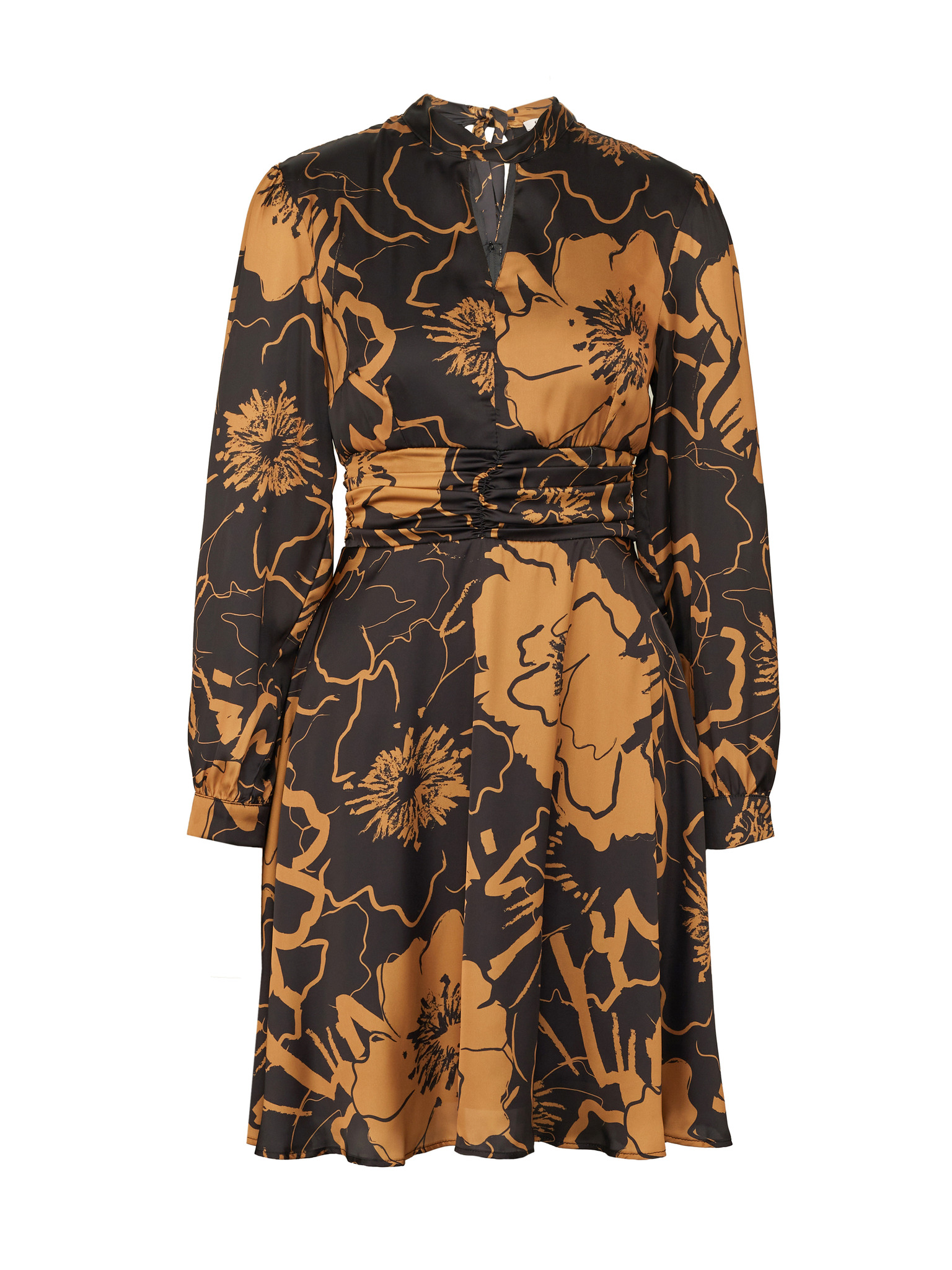 Rjavo-črna ženska cvetlična satenasta obleka ORSAY
