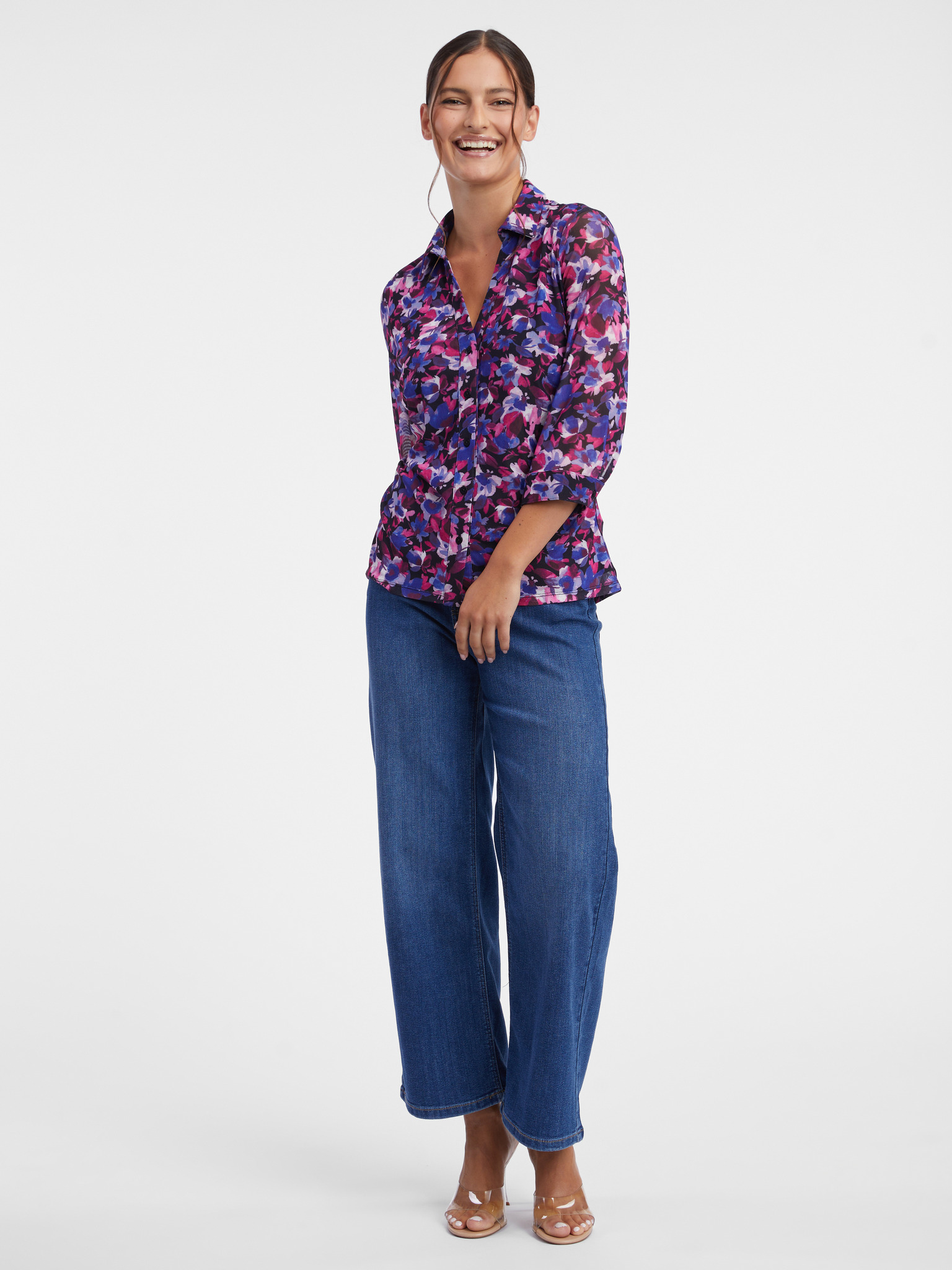 Vijolična ženska zavihana bluza s cvetličnim vzorcem ORSAY