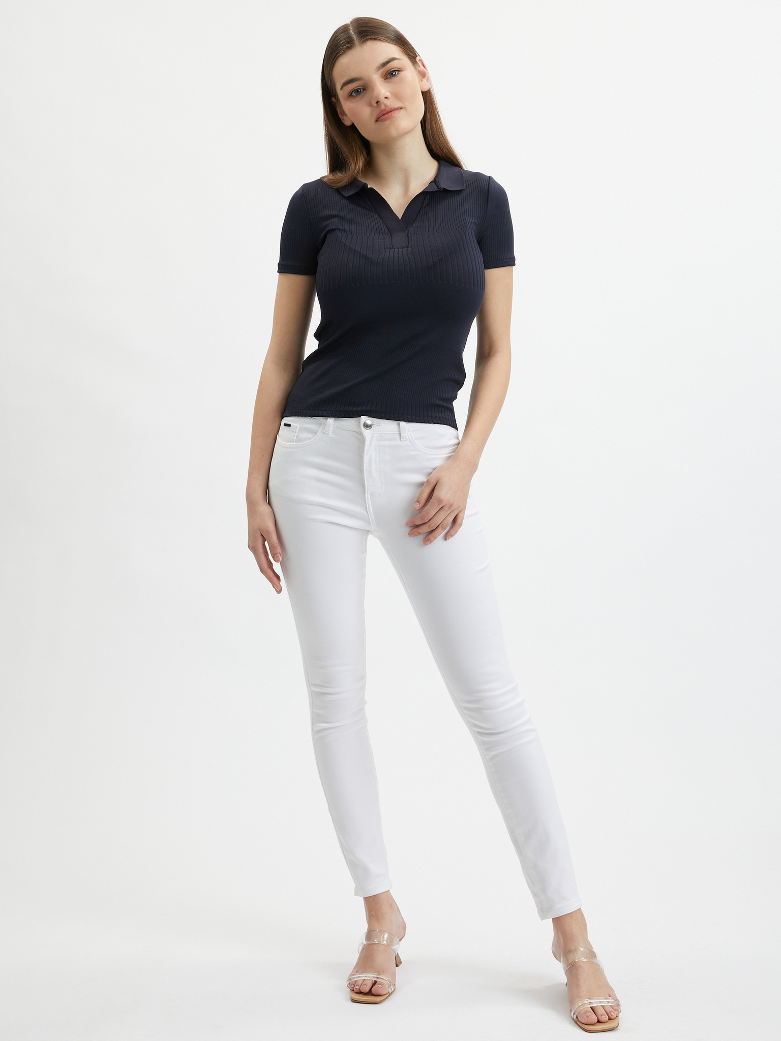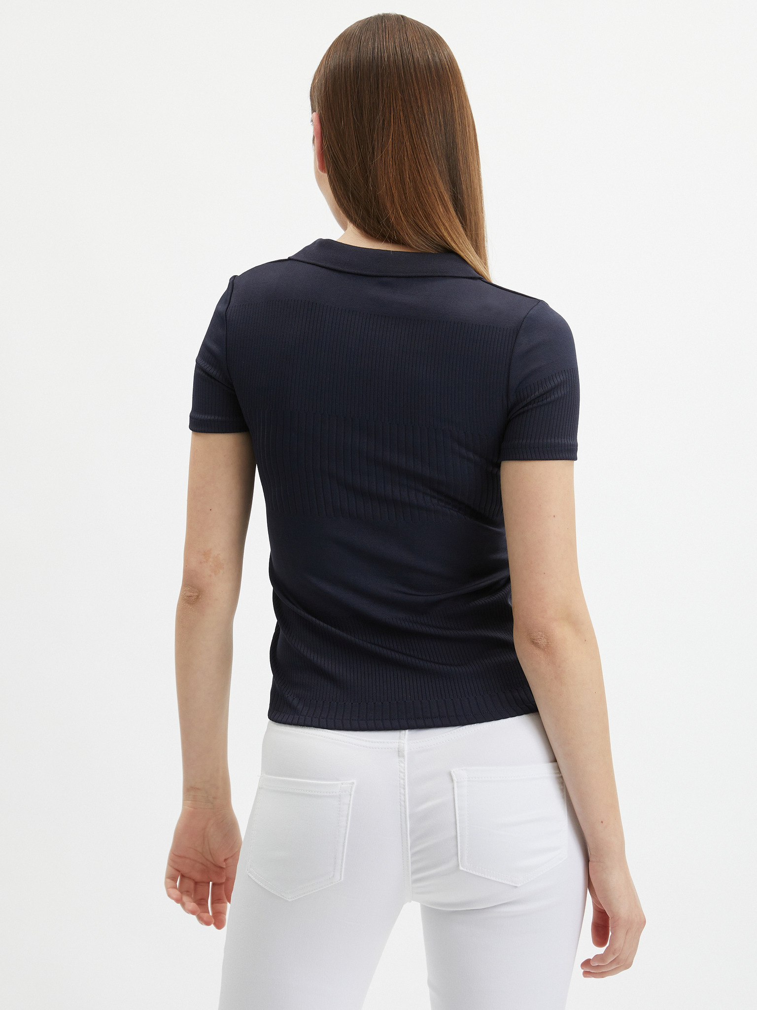 Temno modra ženska črtasta pletena polo majica ORSAY