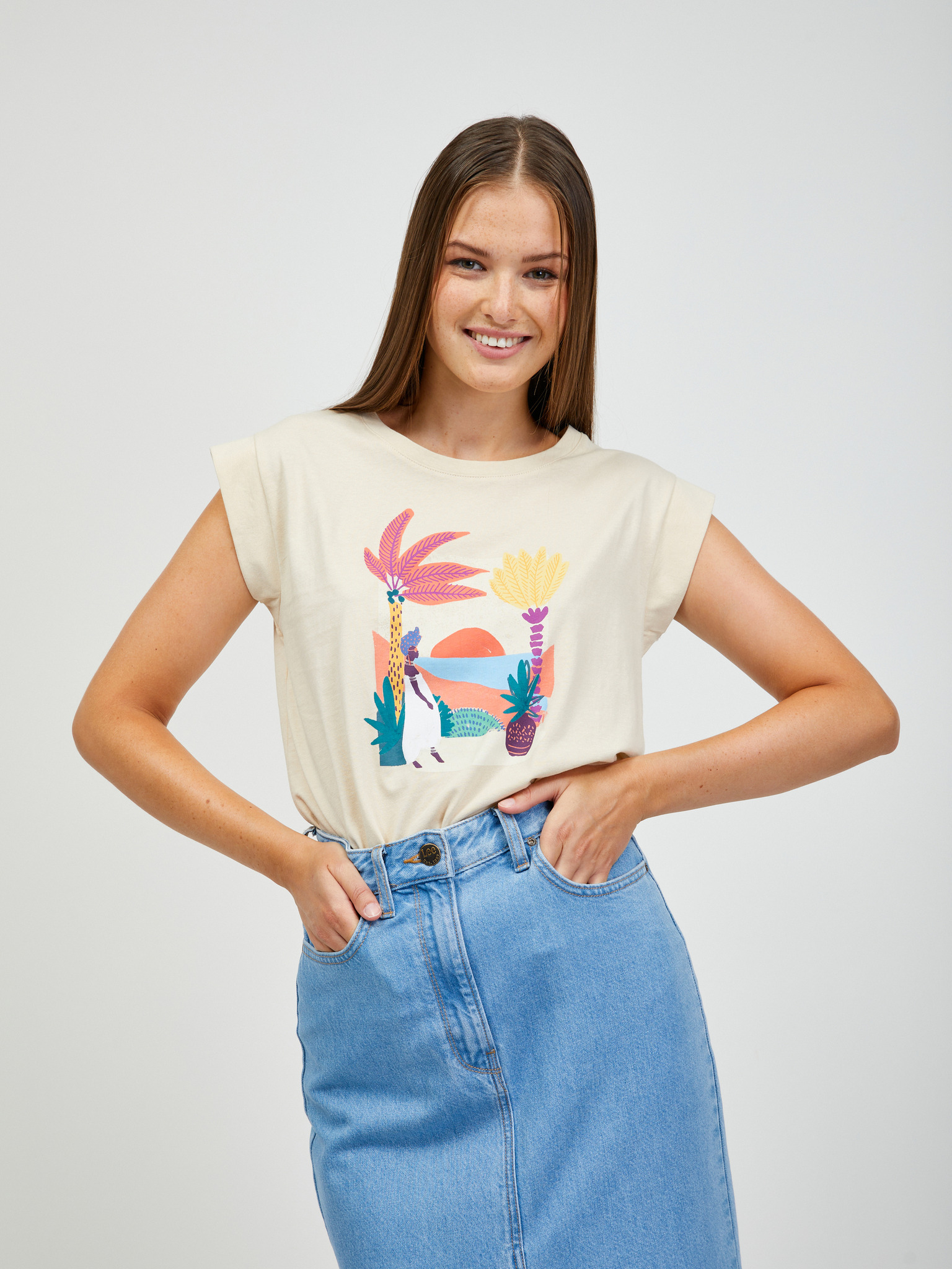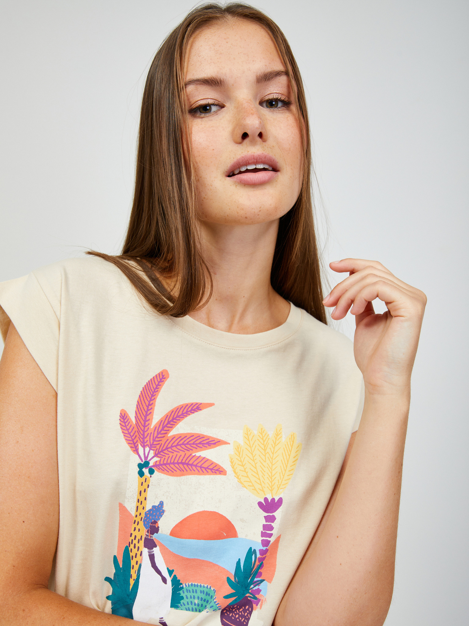 Krem ženska majica s kratkimi rokavi ORSAY