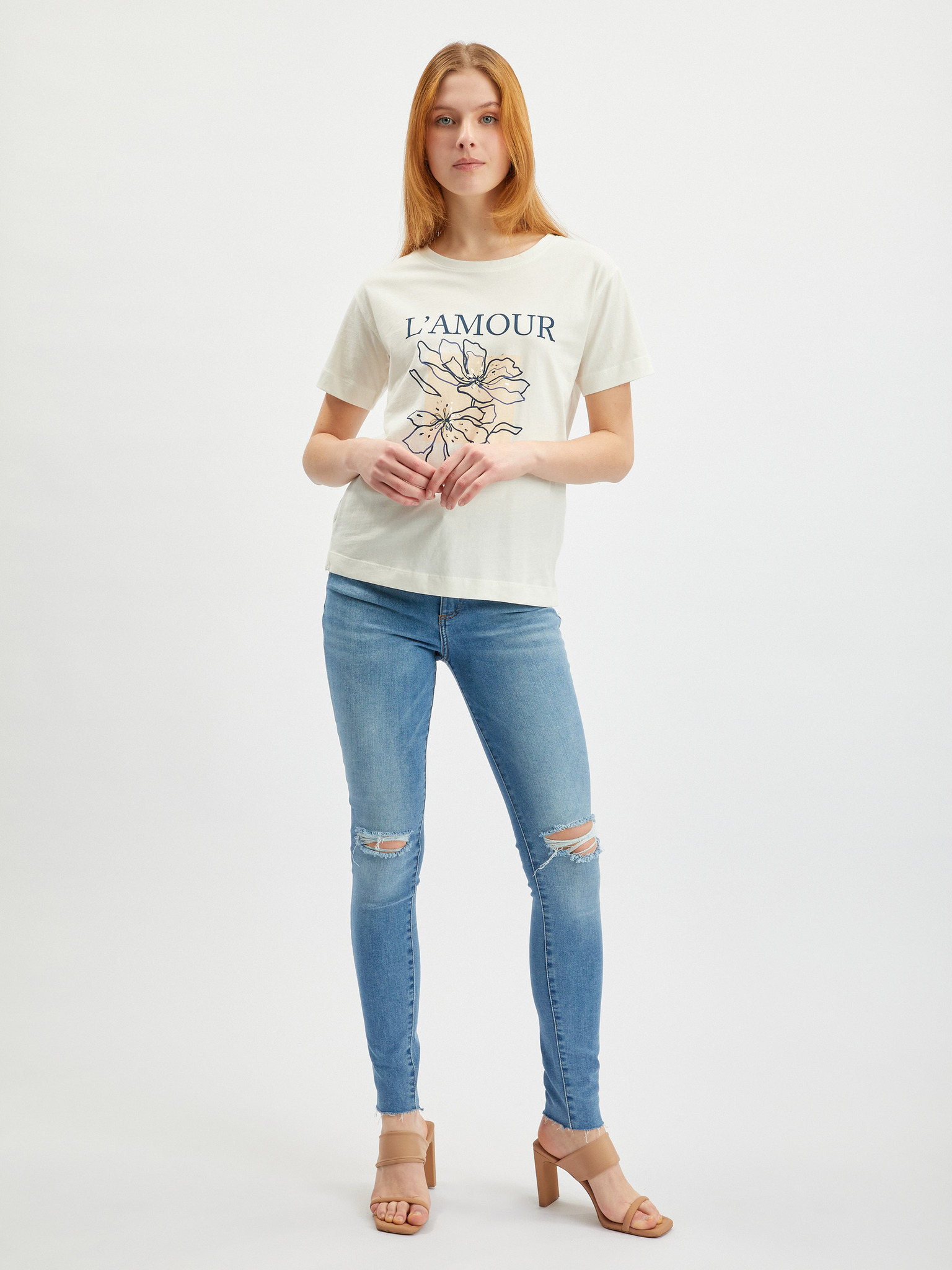 Bela ženska majica s kratkimi rokavi ORSAY