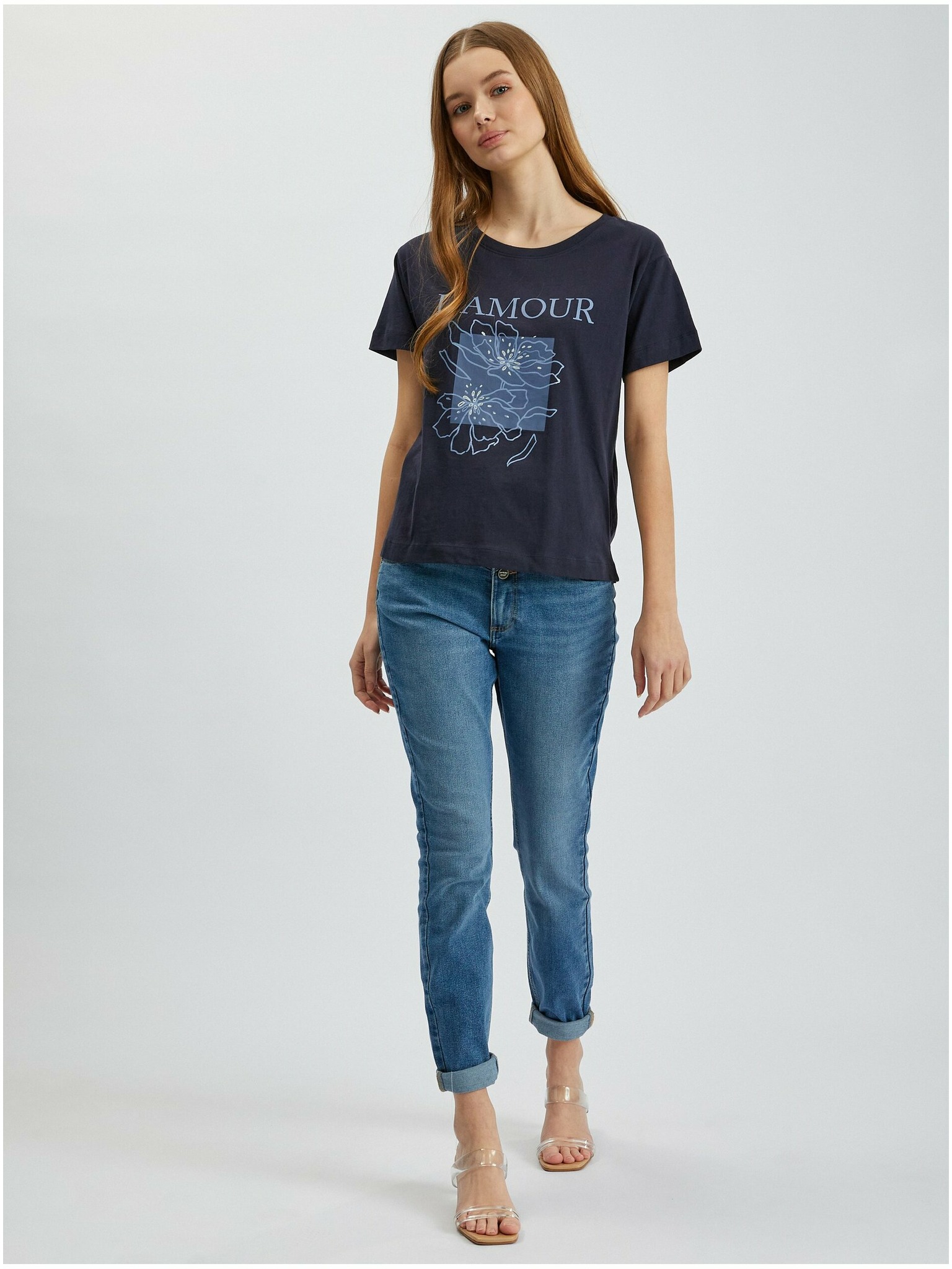 Temno modra ženska majica s kratkimi rokavi ORSAY