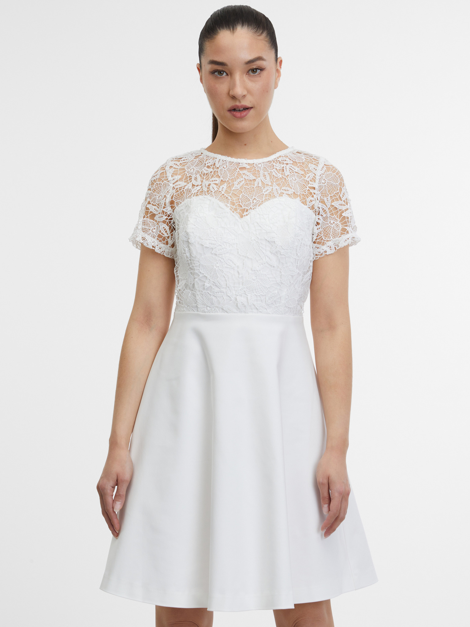 Bela vzorčasta ženska obleka do kolen ORSAY