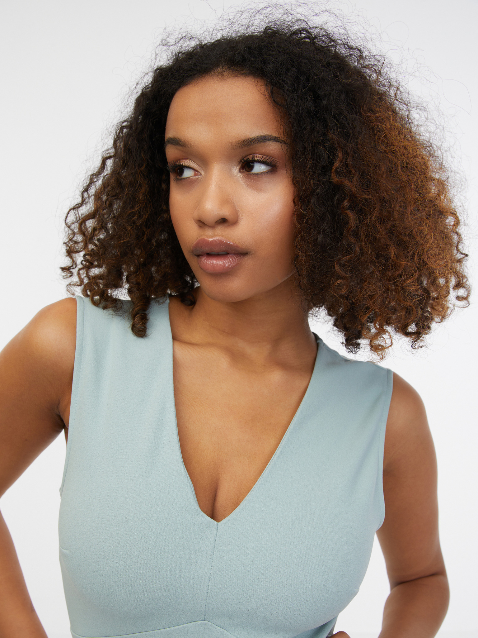Dolga obleka z dekoltejem in vezalkami na ramenih - zelena Numoco ELENA