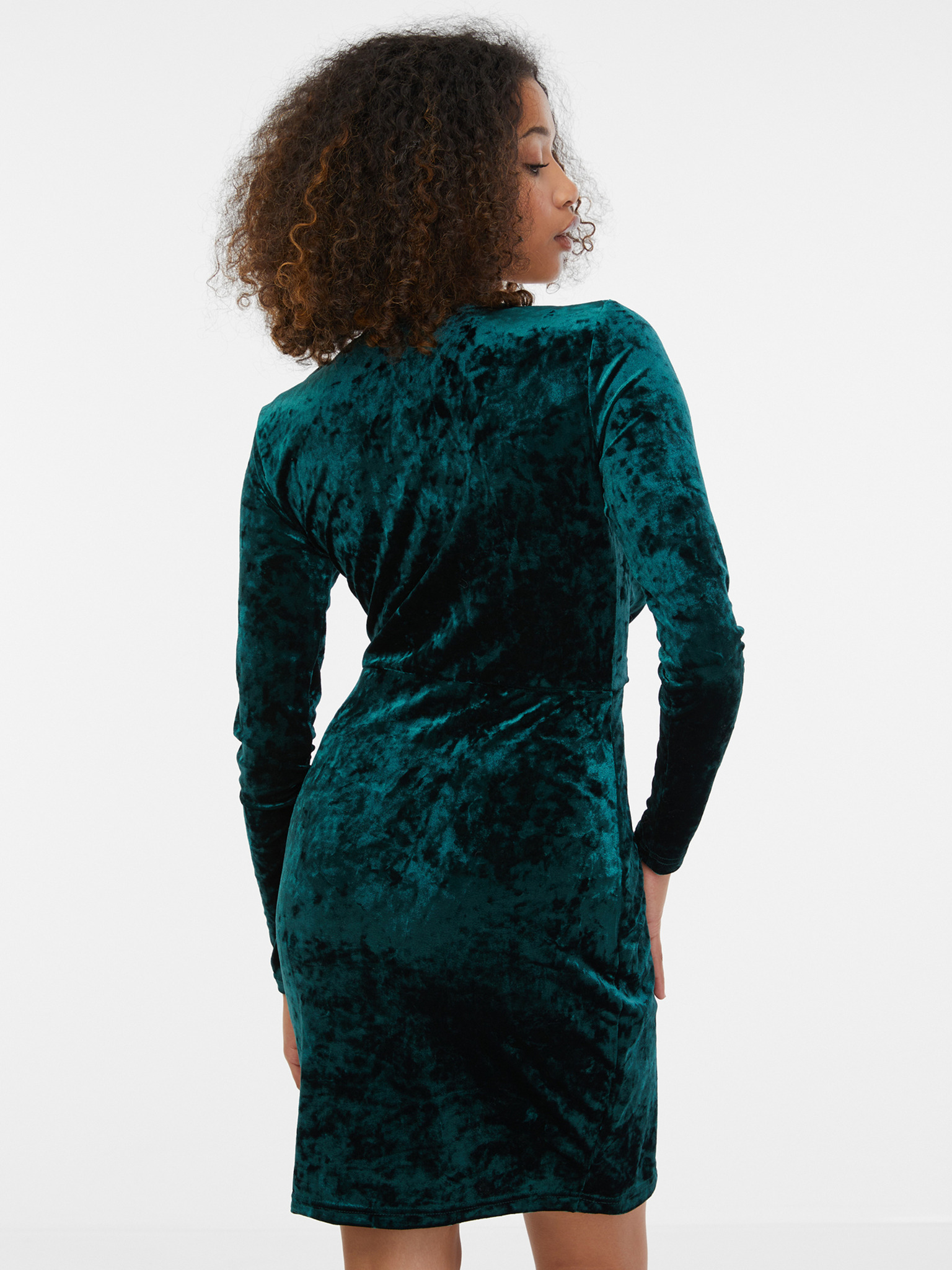 Prilegajoča se obleka z izrezom v obliki svinčnika in dolgimi rokavi - zelena z bleščicami Numoco