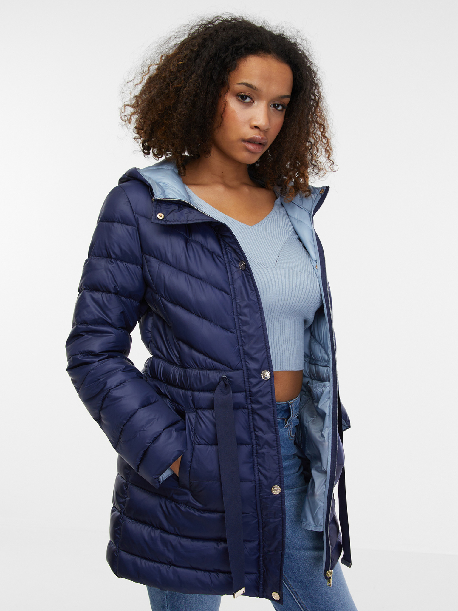 Temno moder ženski lahek prešit plašč ORSAY