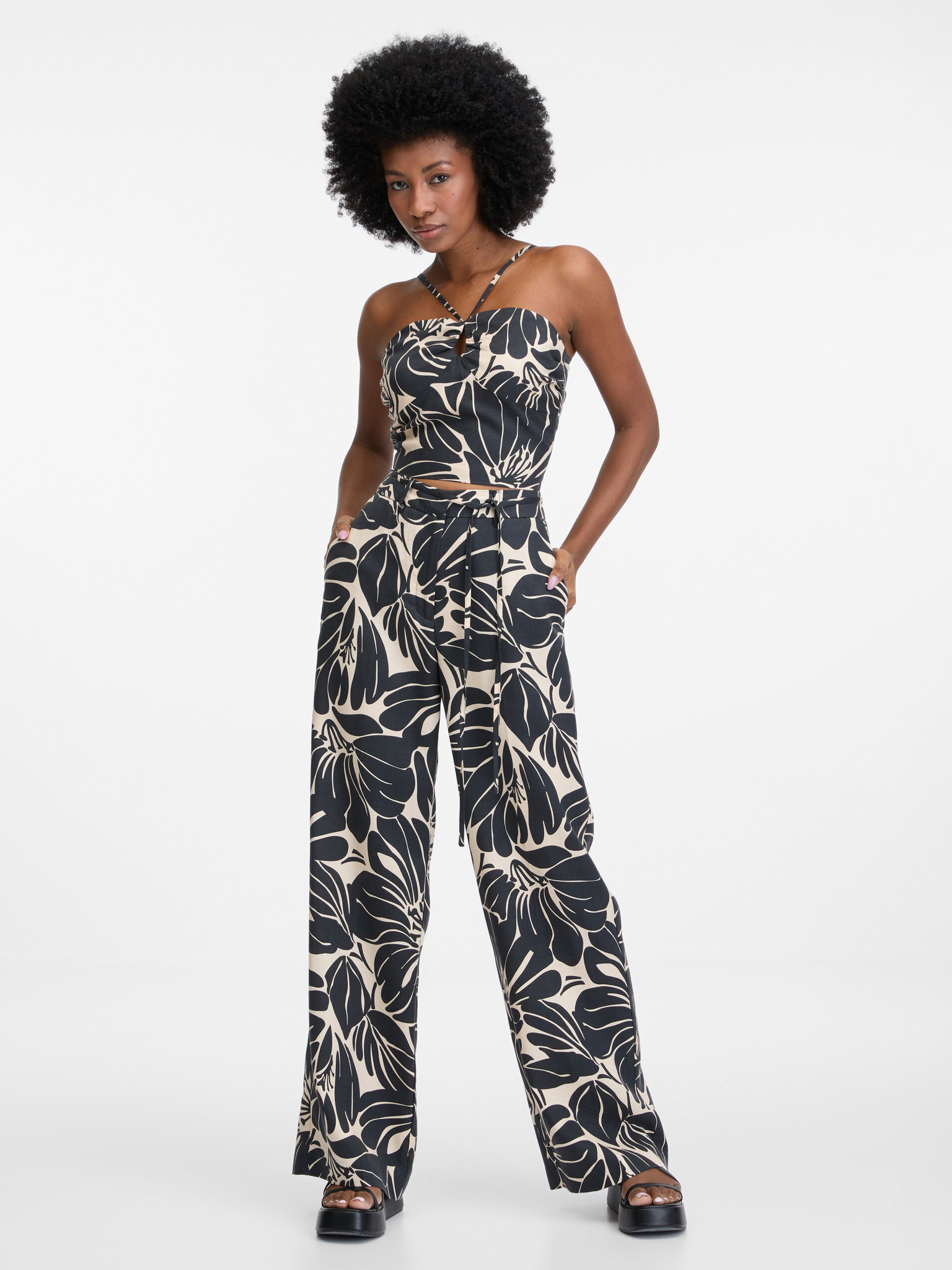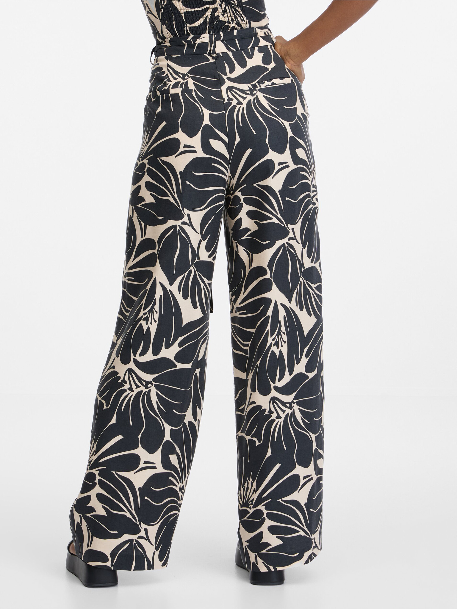 Črne ženske hlače s širokimi nogavicami ORSAY