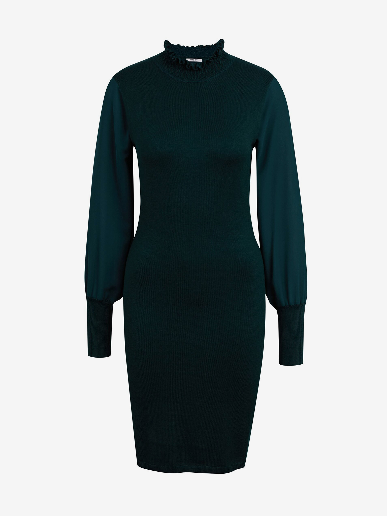 Temno zelena ženska pletena obleka z rokavi ORSAY