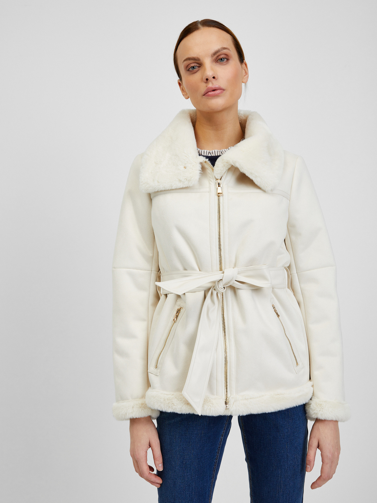 Krem ženska jakna iz umetnega usnja ORSAY