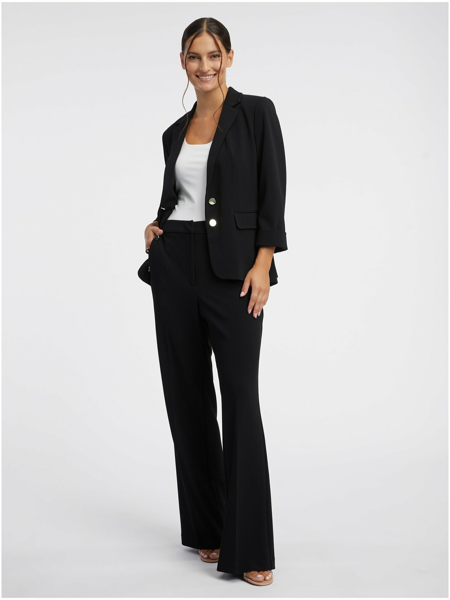 Ženska klasična jakna z nabranimi rokavi - črna