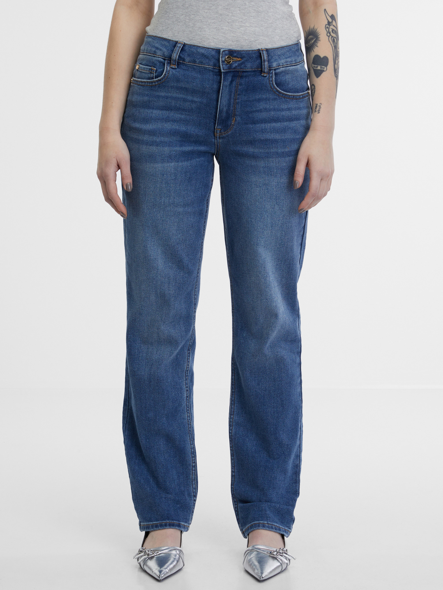 Modre ženske straight mid waist kavbojke ORSAY