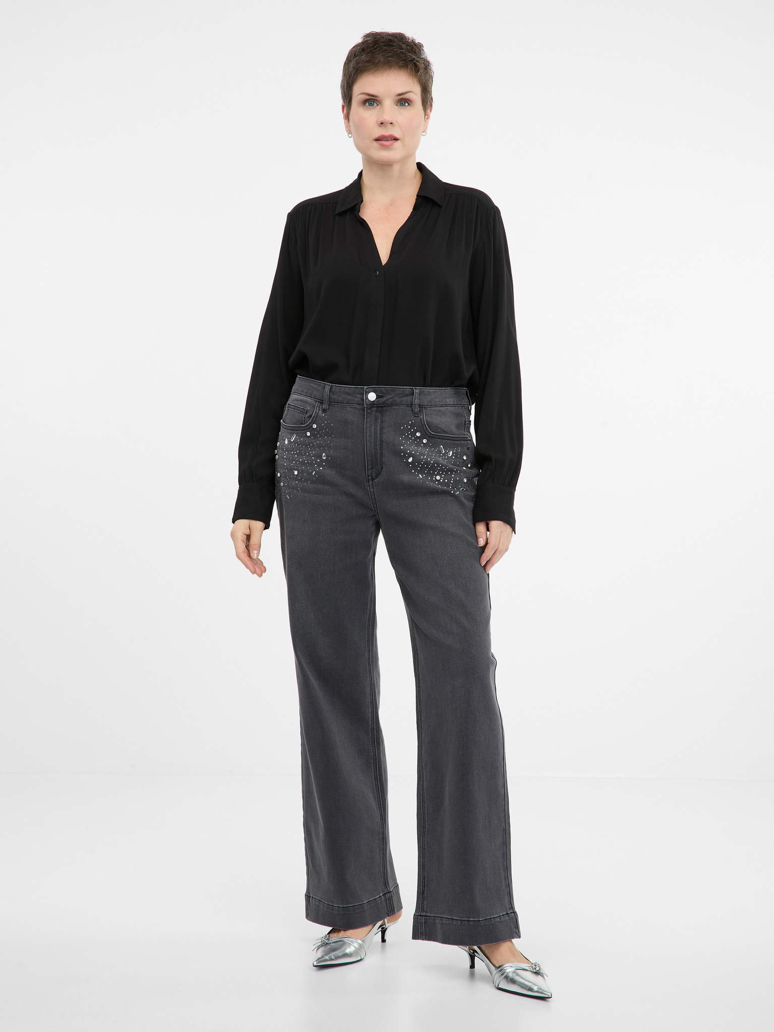 Srebrna ženska bluza z ovratnikom ORSAY