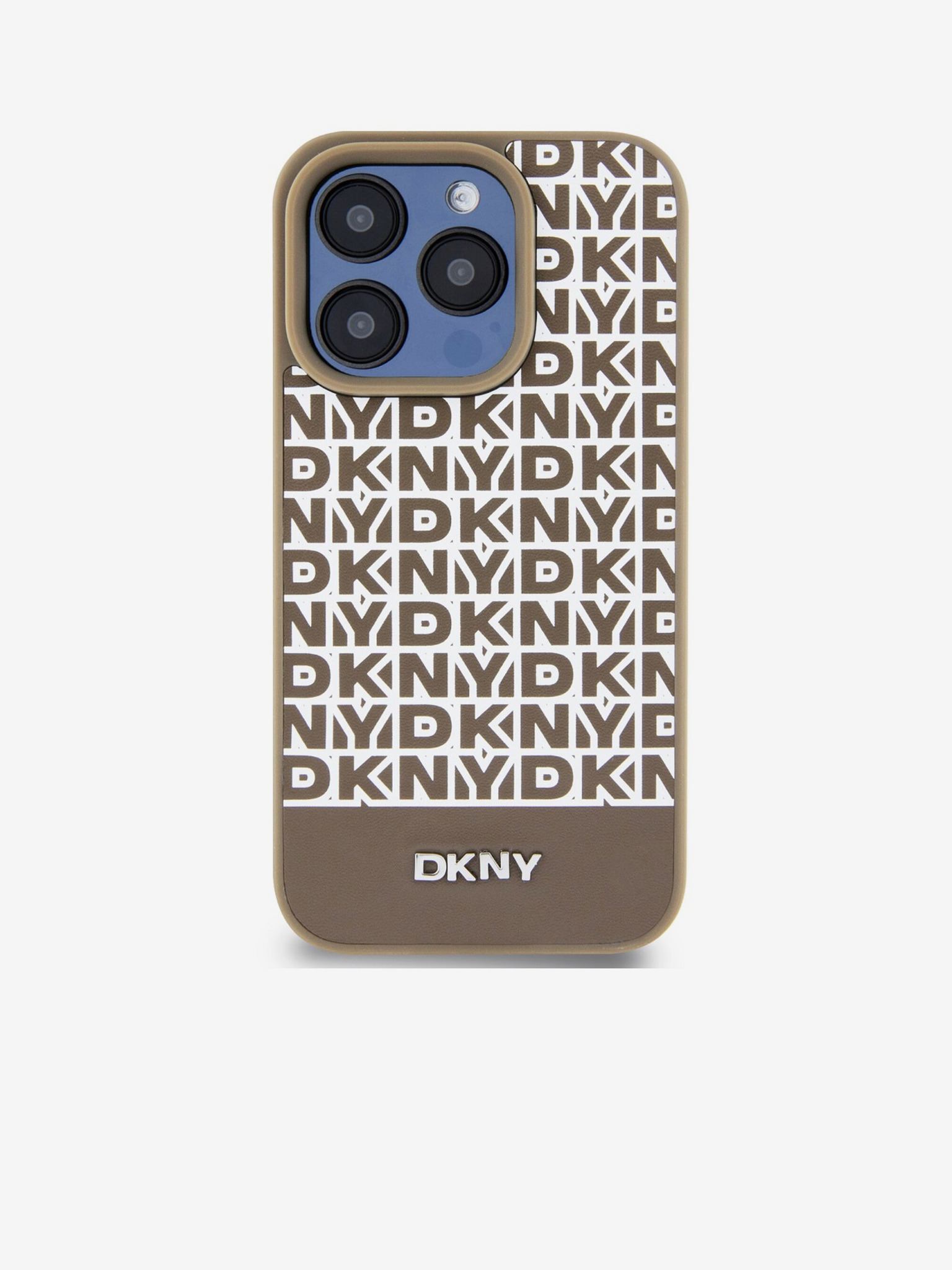 DKNY PU Leather Repeat Pattern Tonal Stripe Back Cover za iPhone 16 Pro Beige