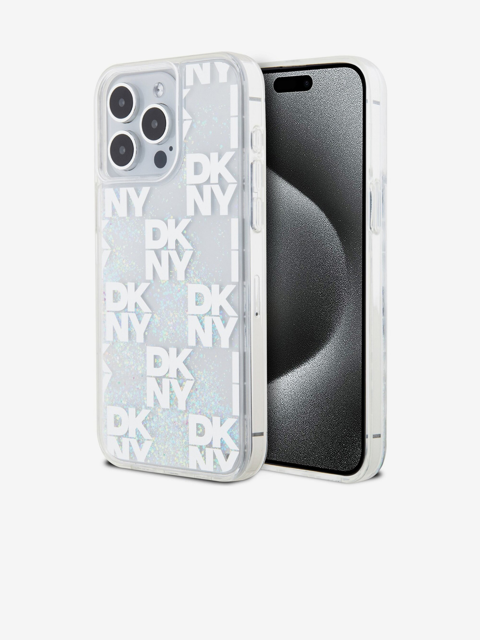 Tekoče bleščice s kvačkanim vzorcem za iPhone 15 Pro Max Transparent DKNY