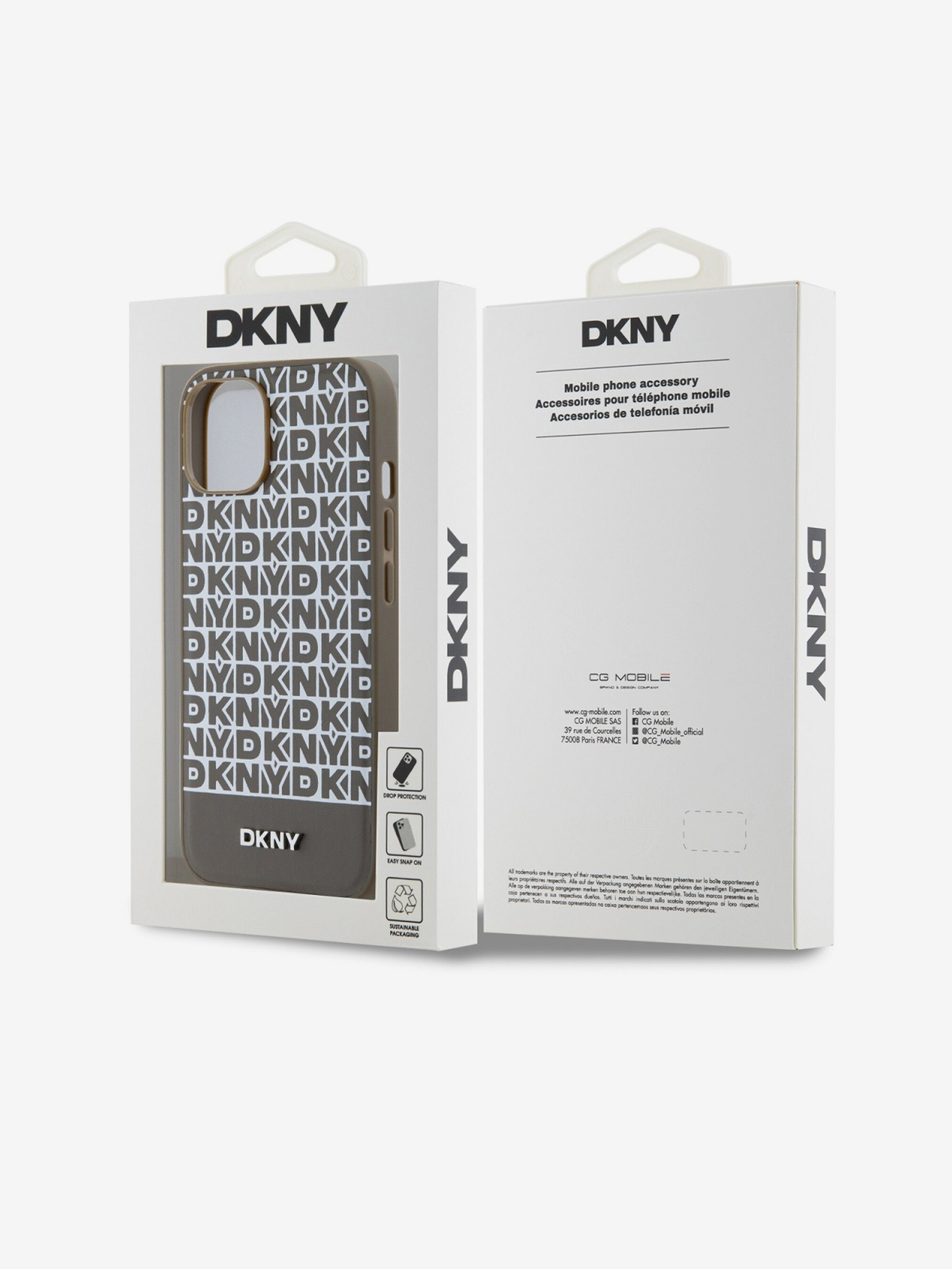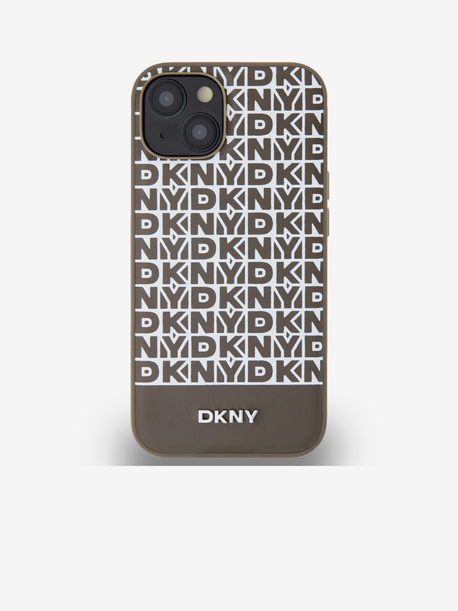 DKNY PU usnje s ponavljajočim se vzorcem v tonskih črtah Zadnji ovitek za iPhone 16 Pro Max Beige
