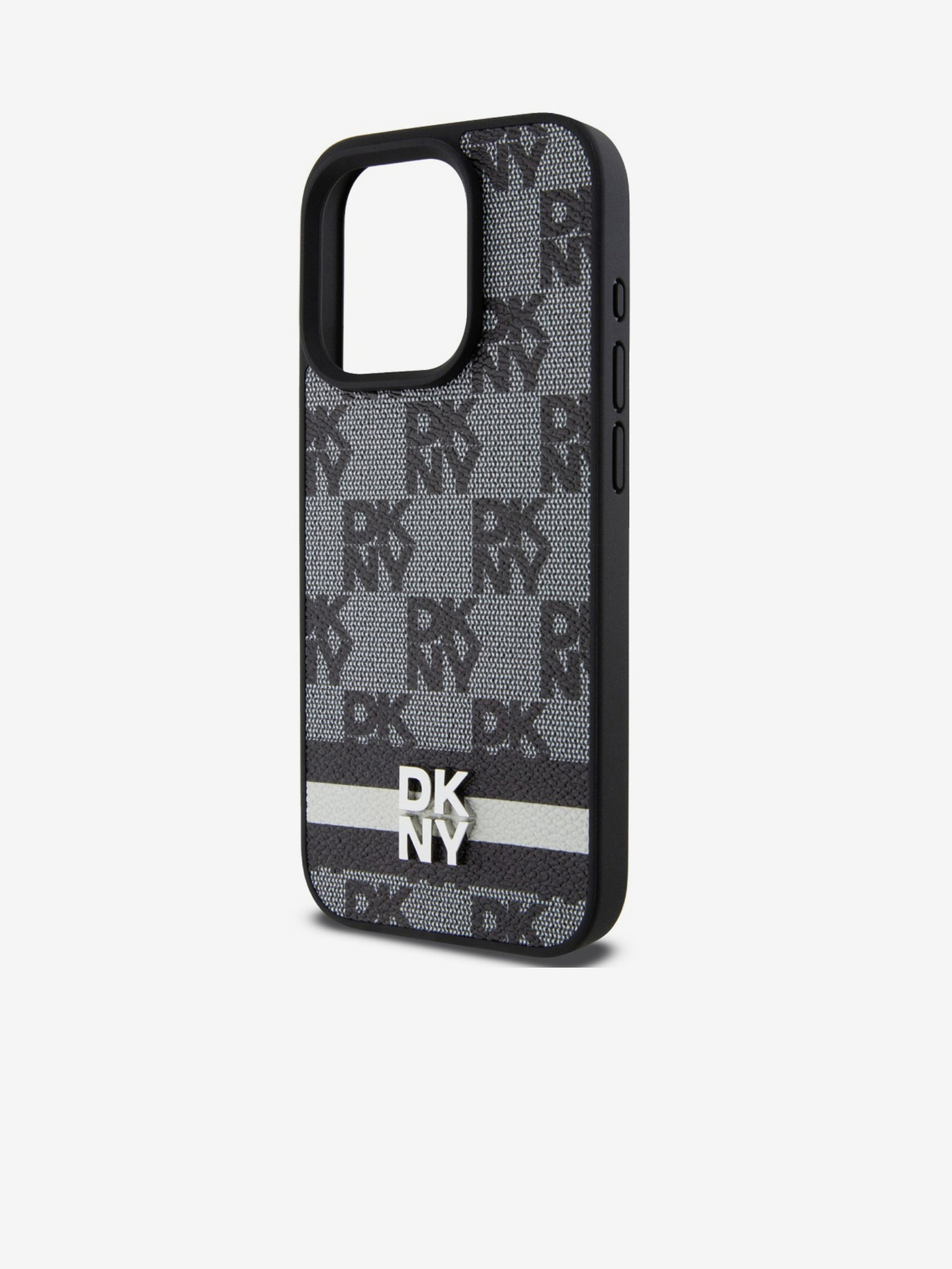 DKNY PU usnje s šahiranim vzorcem Magsafe hrbtni ovitek za iPhone 16 Plus črn
