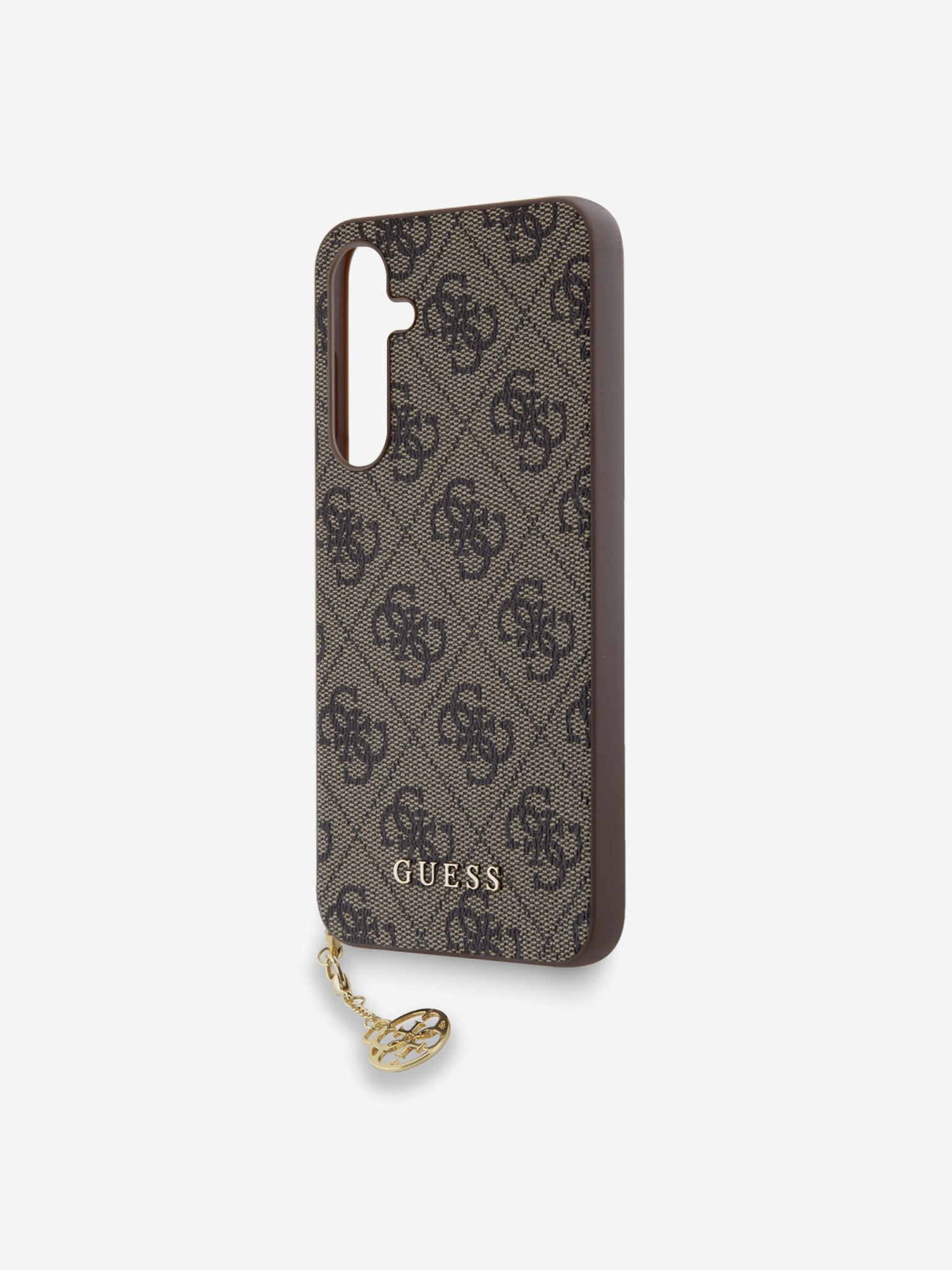 Guess PU 4G Metal Logo Strap Zadnji ovitek za iPhone 16 Rjav