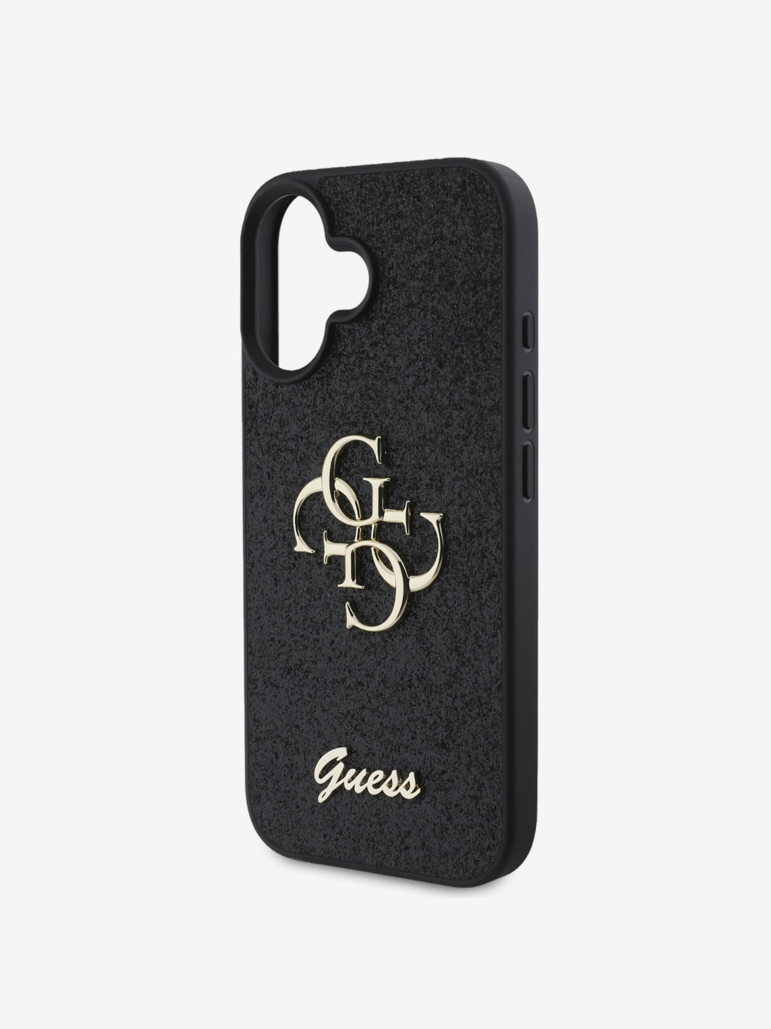 Guess PU Grained 4G Kovinski Logo Zadnji ovitek za iPhone 16e Črn