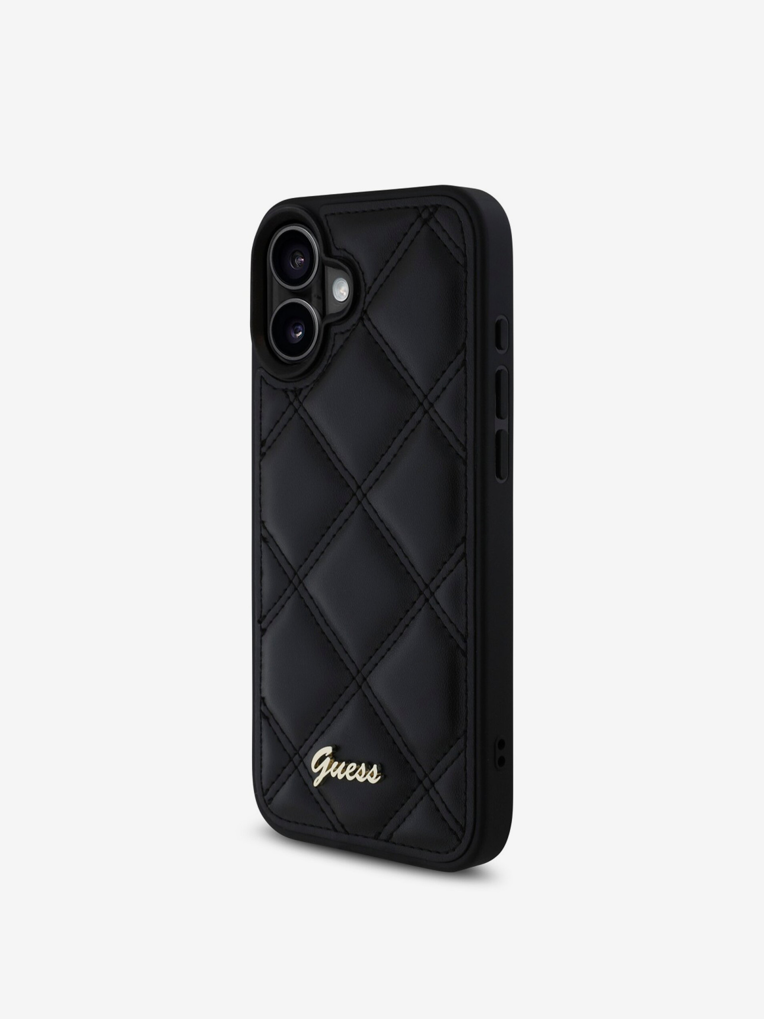Guess PU 4G Metal Logo Strap Zadnji ovitek za iPhone 16 Rjav