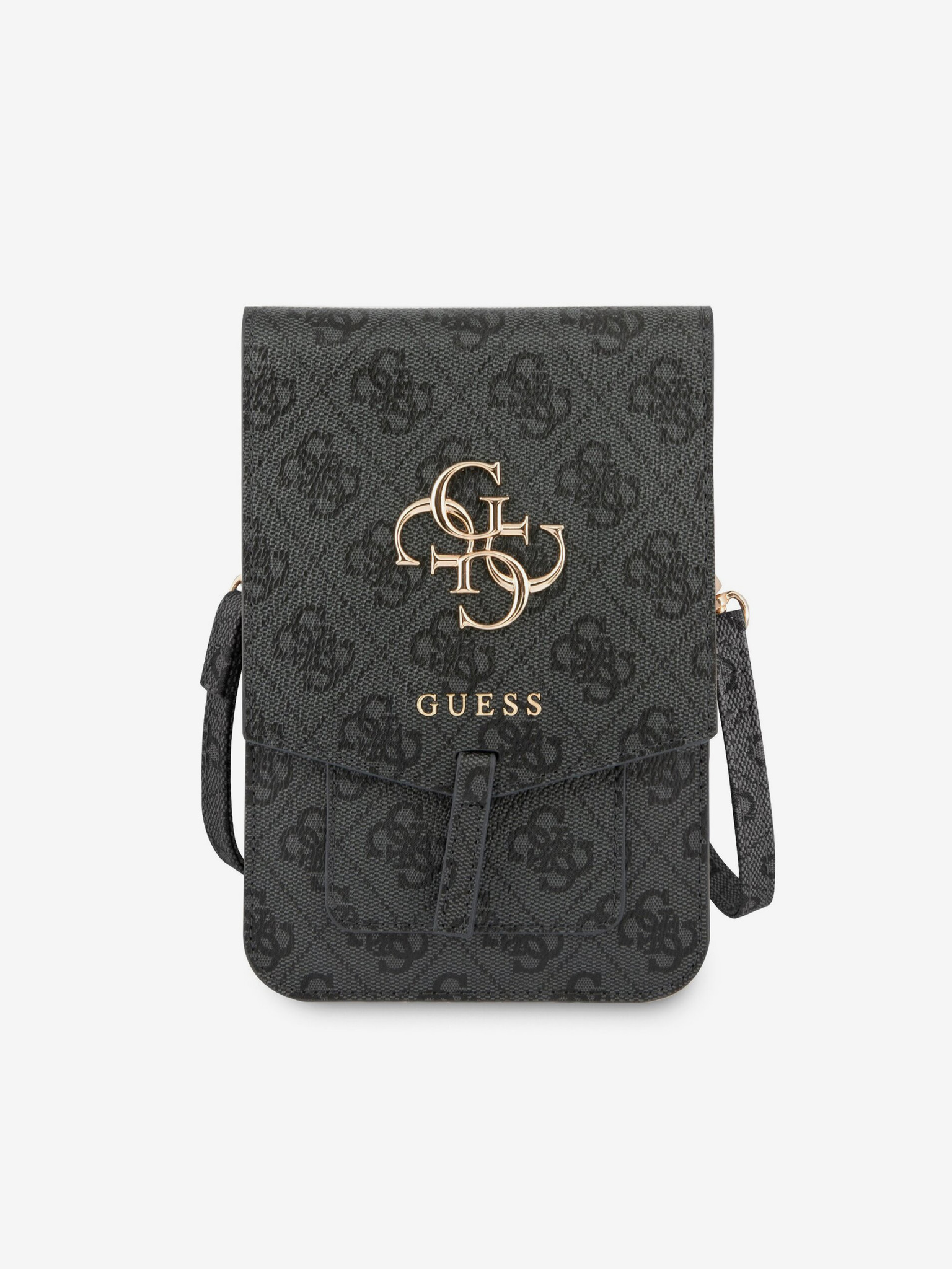 Guess PU 4G Metal Logo Strap Zadnji ovitek za iPhone 16 Pro Rjav