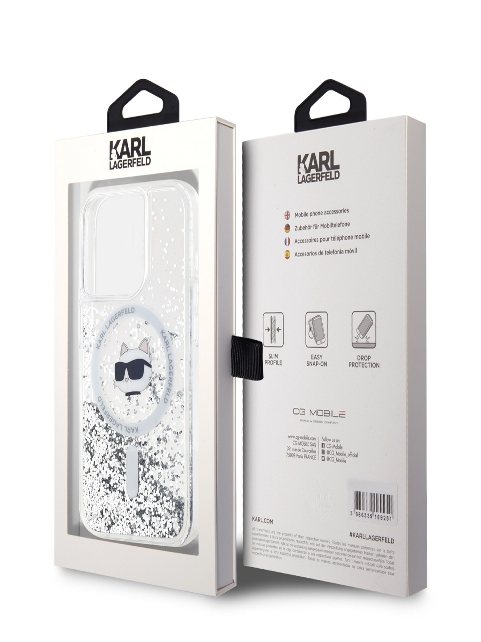 Karl Lagerfeld IML Bleščice Karl in Choupette Skica MagSafe Zadnji Pokrov za iPhone 16 Prozoren