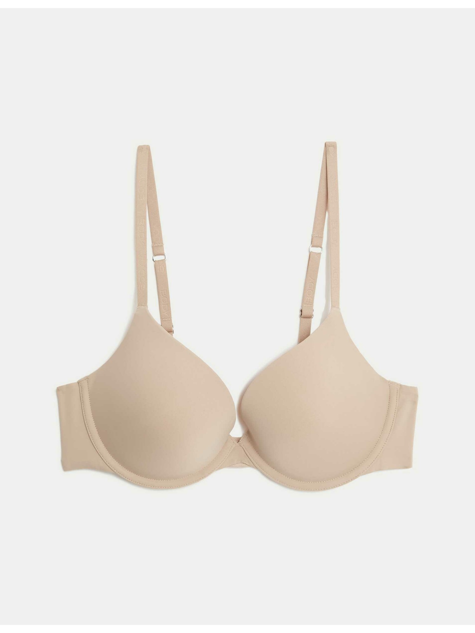 Modrček s polnimi skodelicami, velikost 3,5 cm, velikost 4,5 cm, s podloženimi in polnimi skodelicami. A-E Marks & Spencer bež