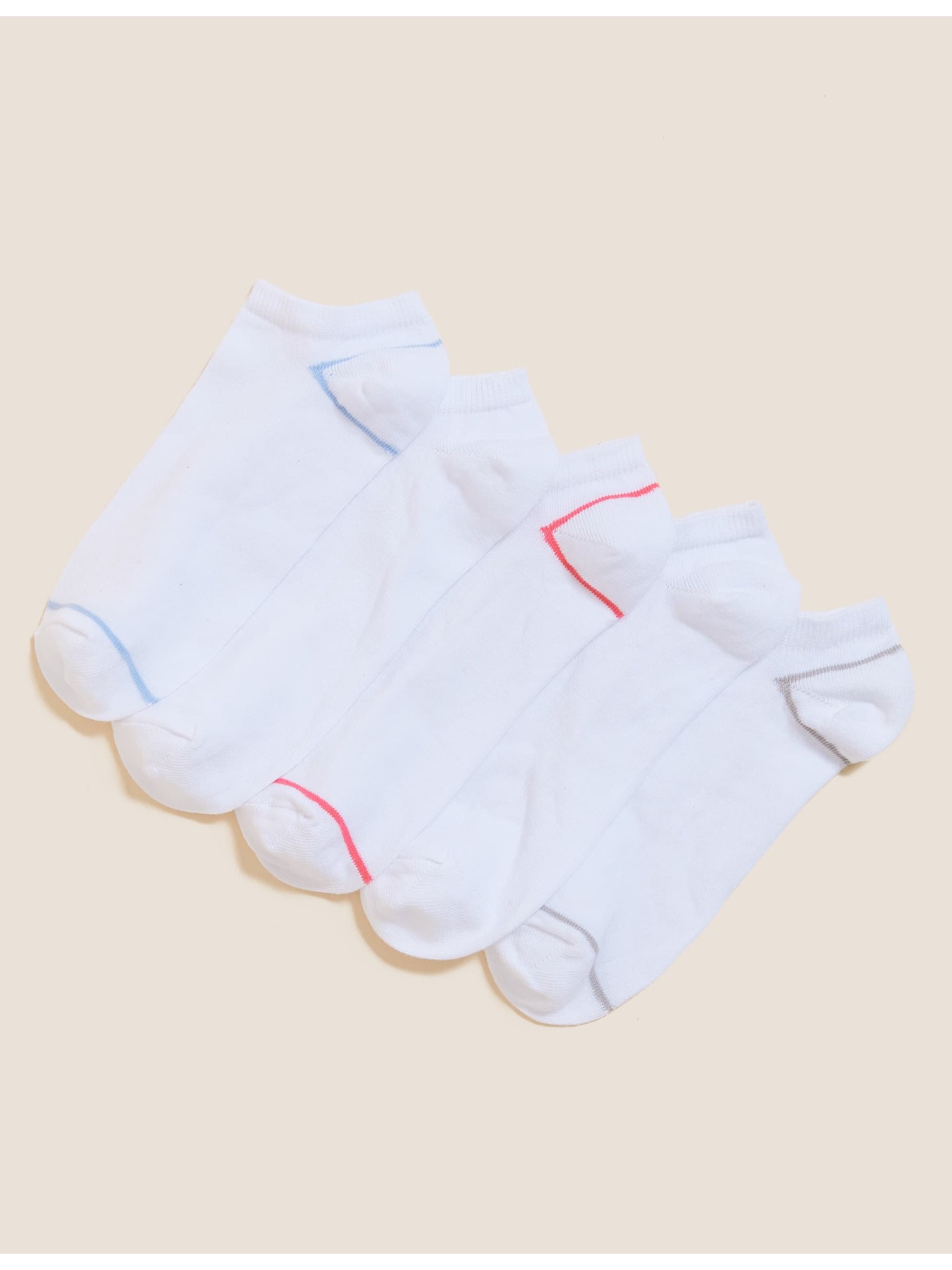 Komplet petih parov ženskih športnih nogavic v beli barvi Marks & Spencer Trainer Liners™