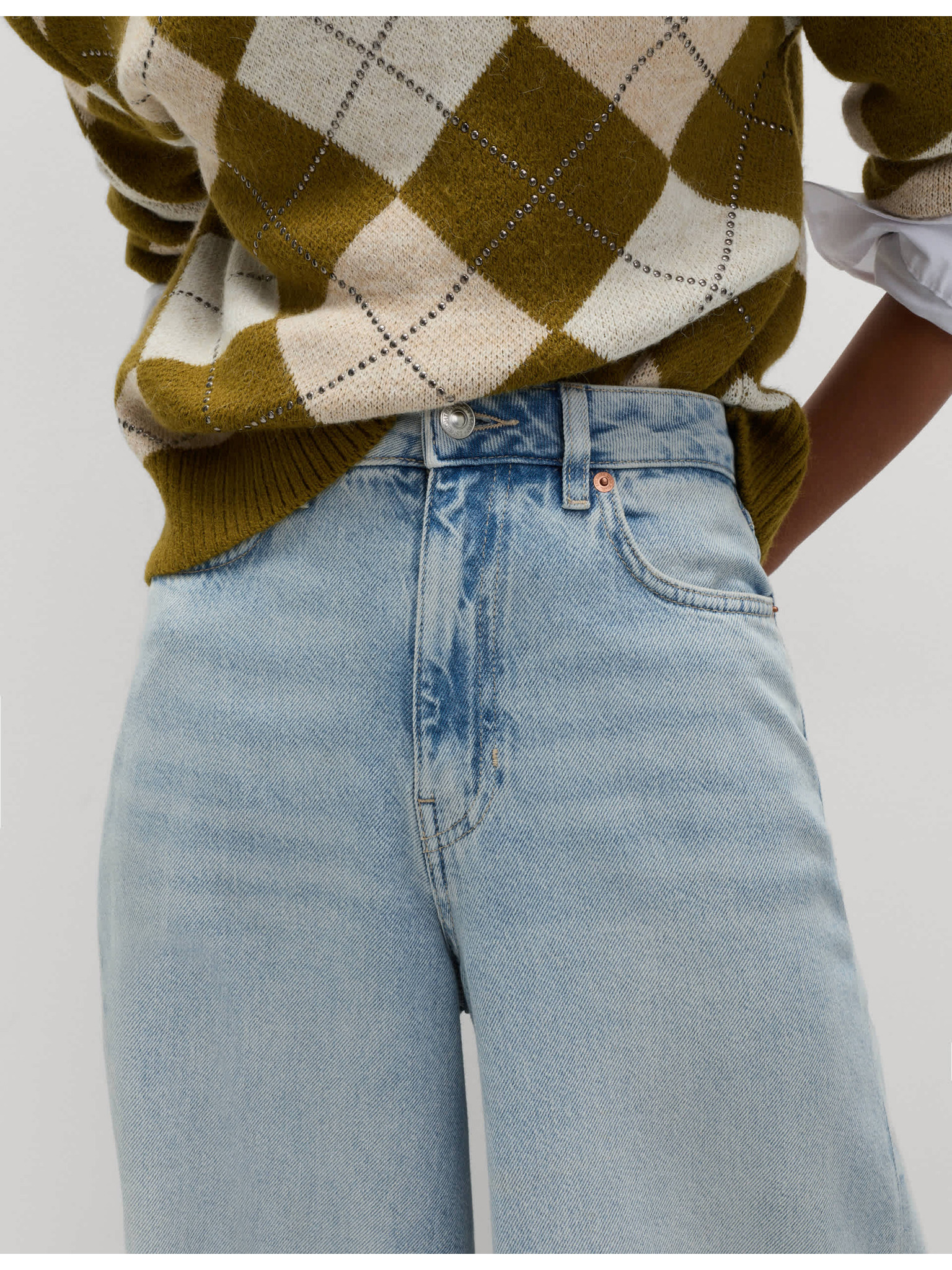 Svetlo modre jeans hlače z wide leg krojem Moodo