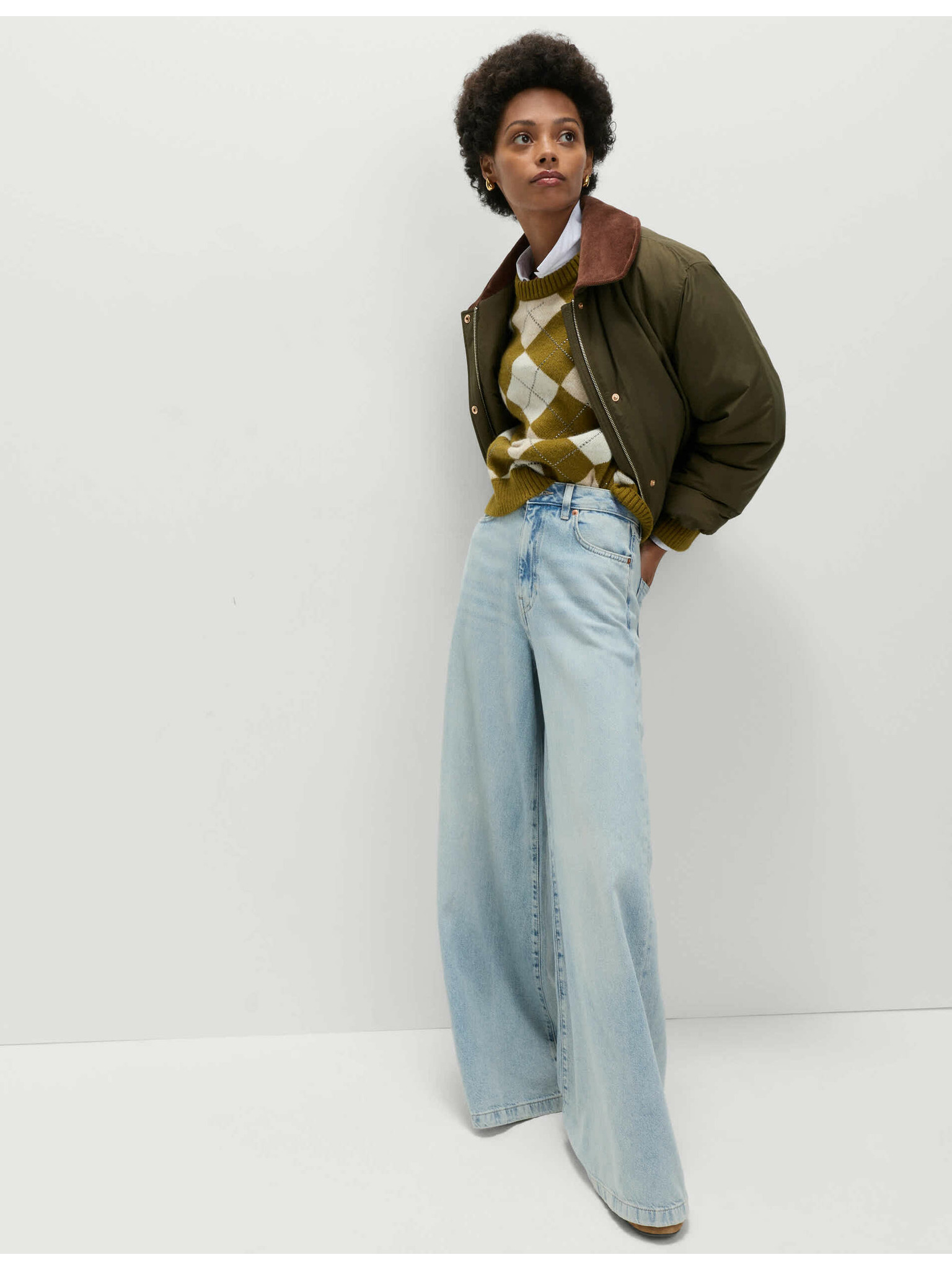 Džins s širokimi zavihki hlačnic in srednjevisokim pasom Marks & Spencer mornarsko modra