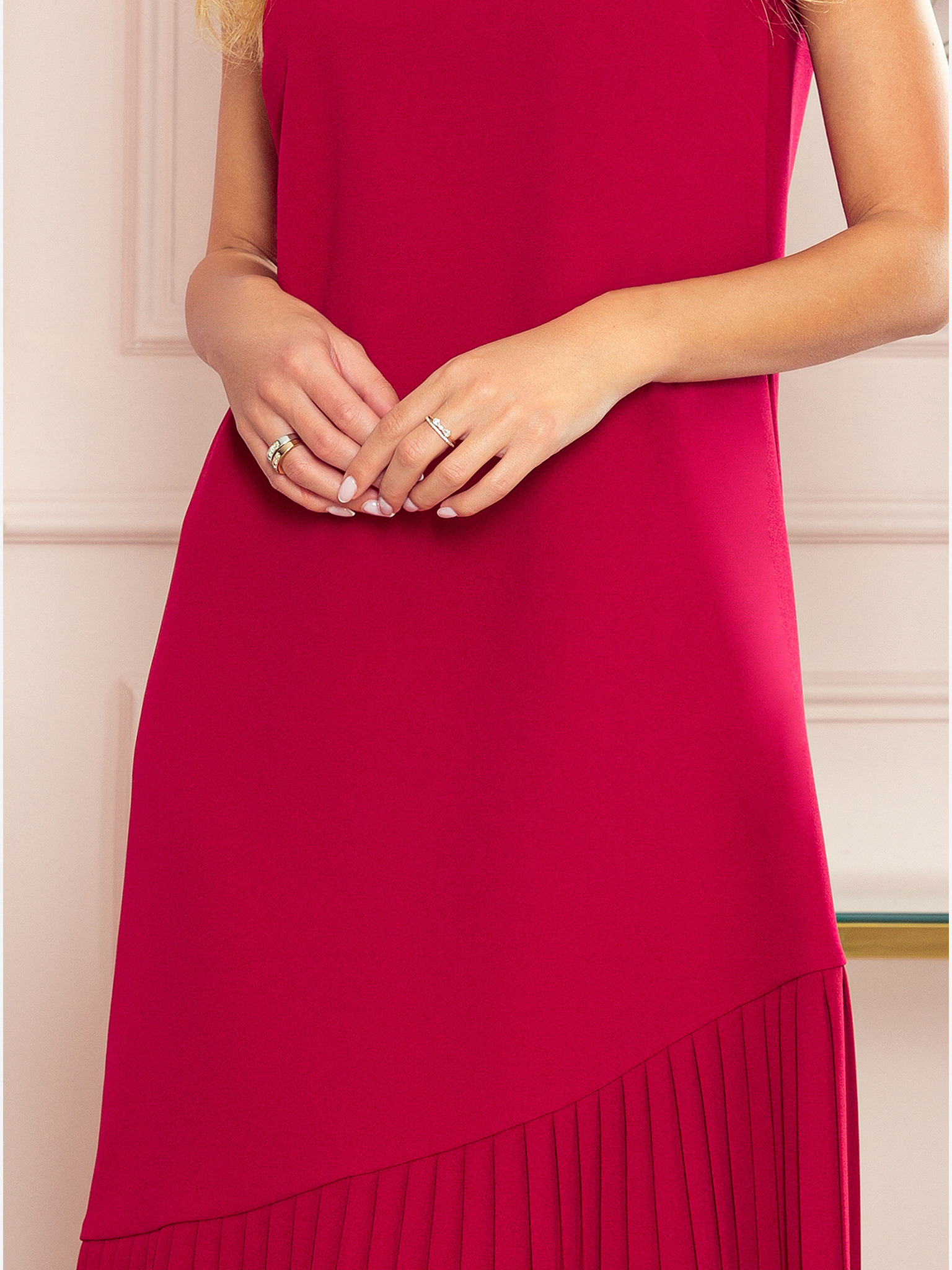 Nagubana obleka z volančki in izrezom - rdeča Numoco EMILY