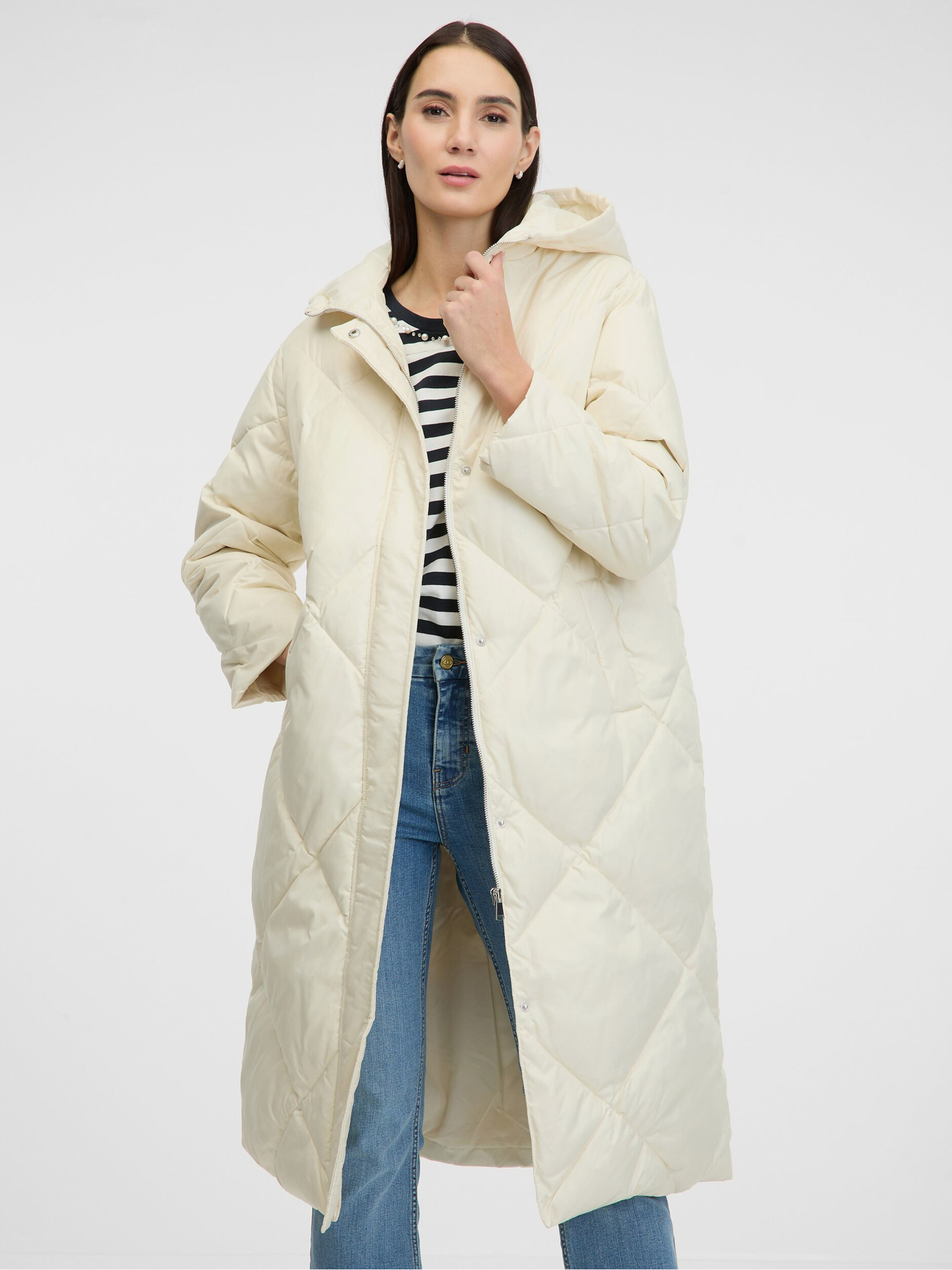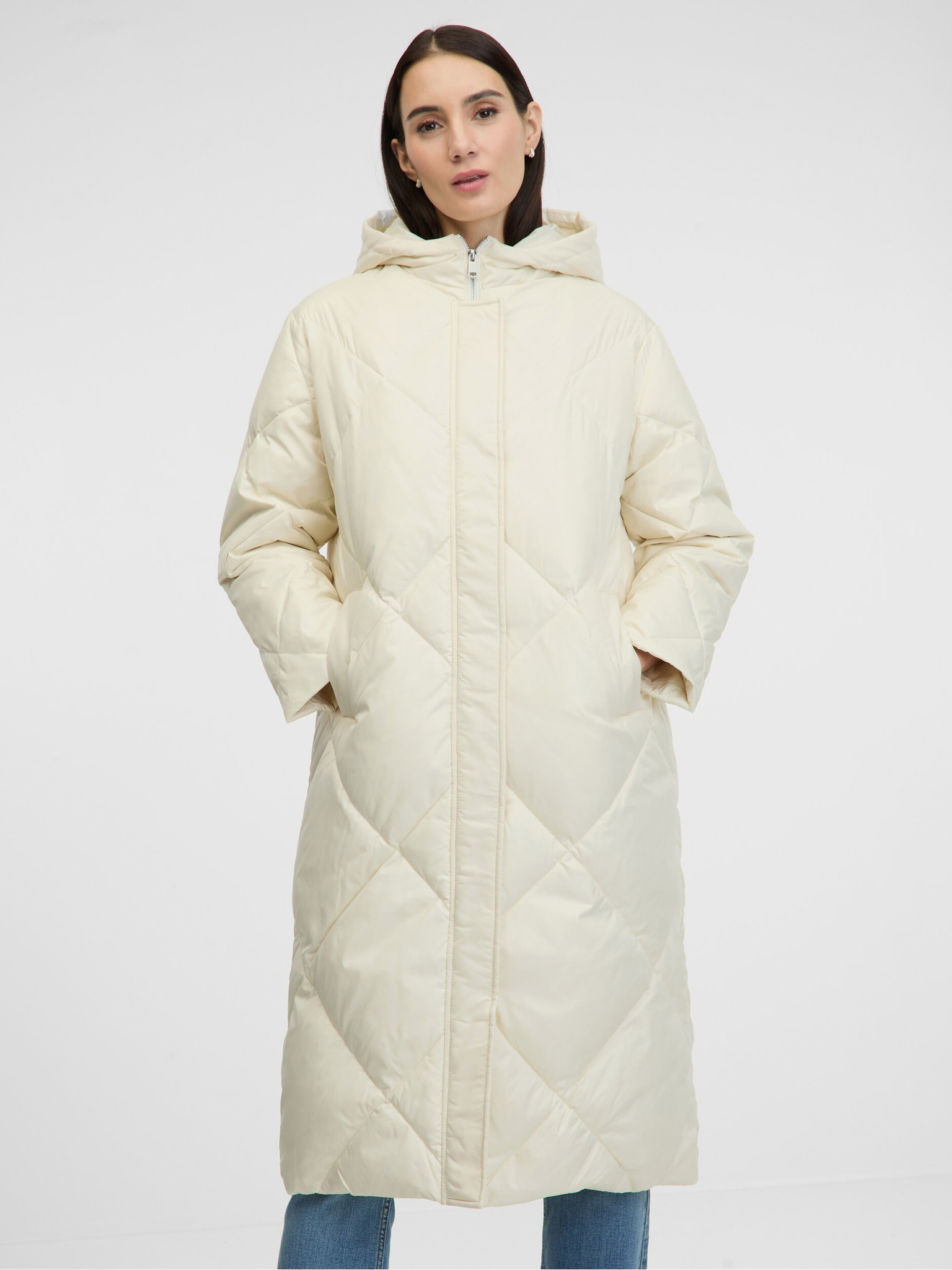 Krem ženski prešiti plašč z umetnim krznom ORSAY