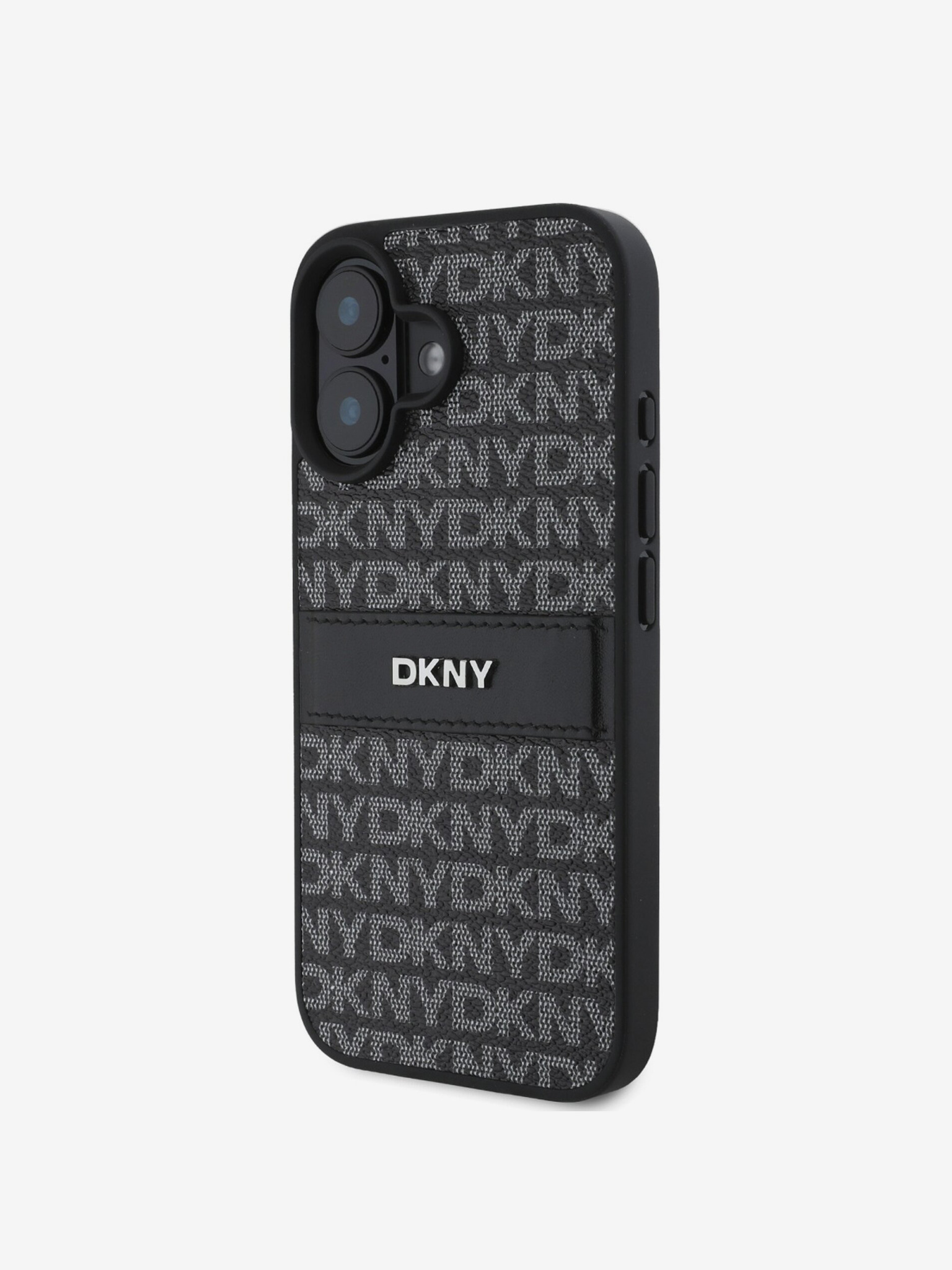 DKNY PU usnje s ponavljajočim se vzorcem s tonskim trakom Zadnji ovitek za iPhone 16 Plus črn