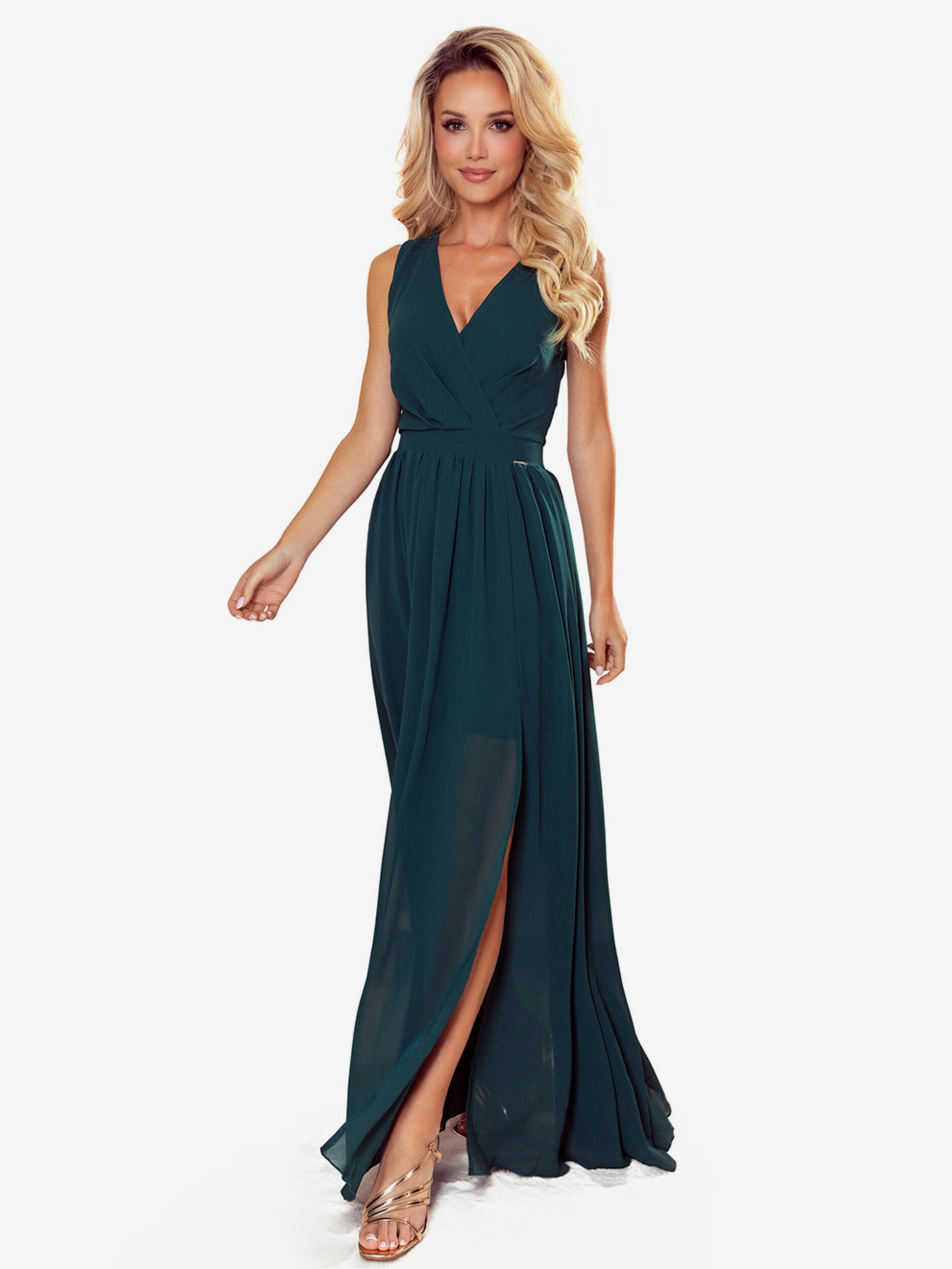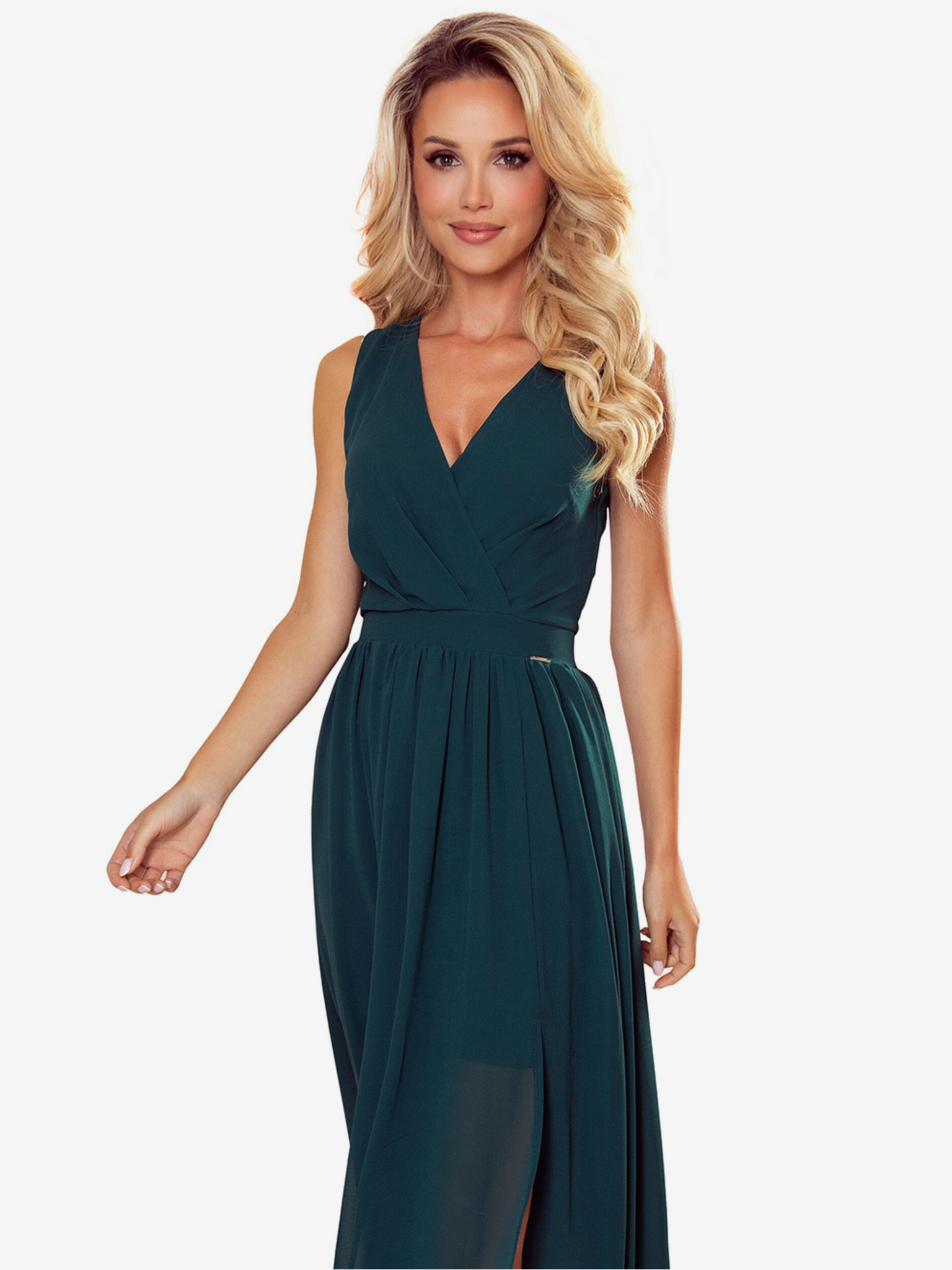 Dolga obleka z izrezom in kravato - zelena Numoco JUSTINE