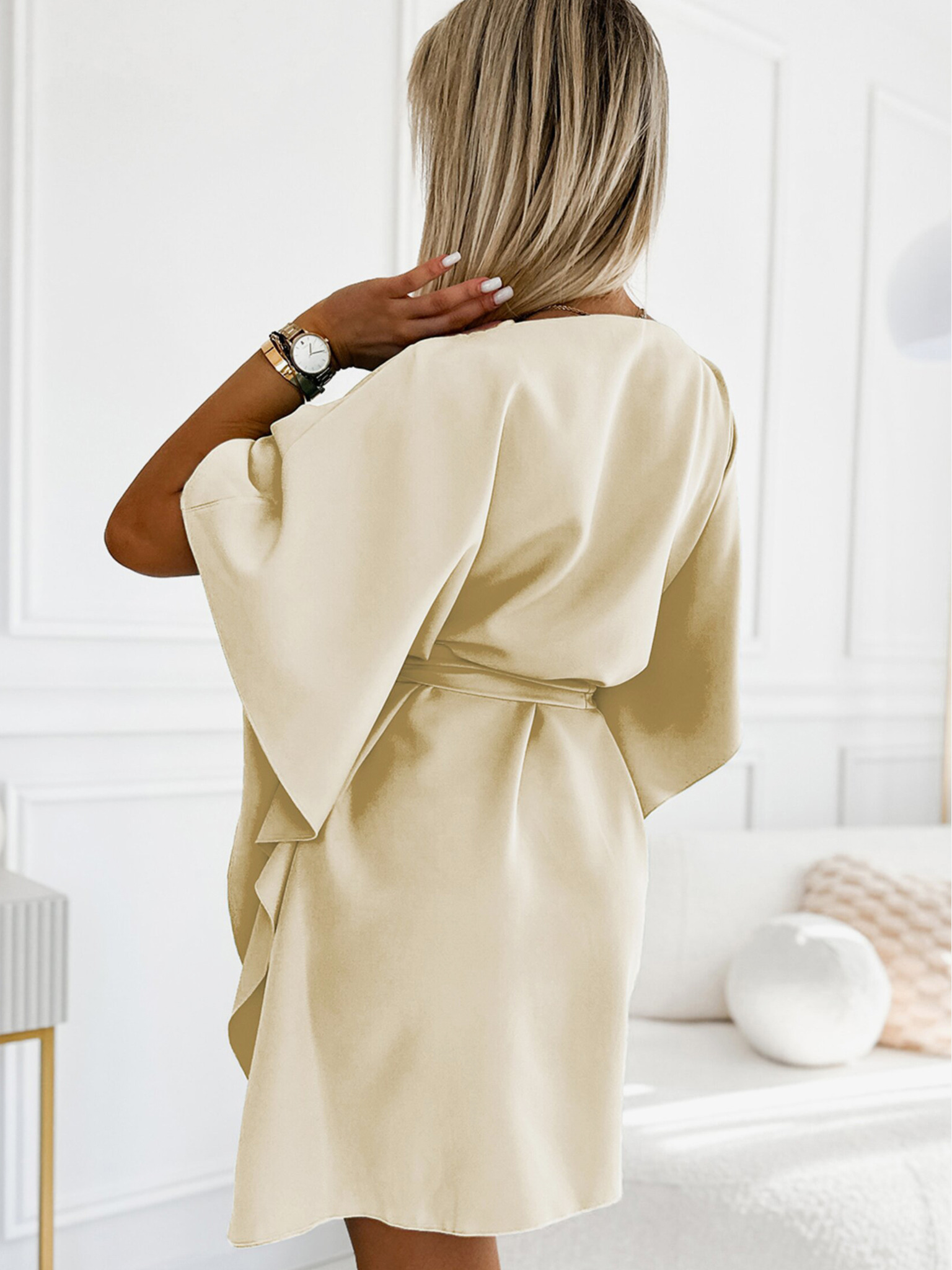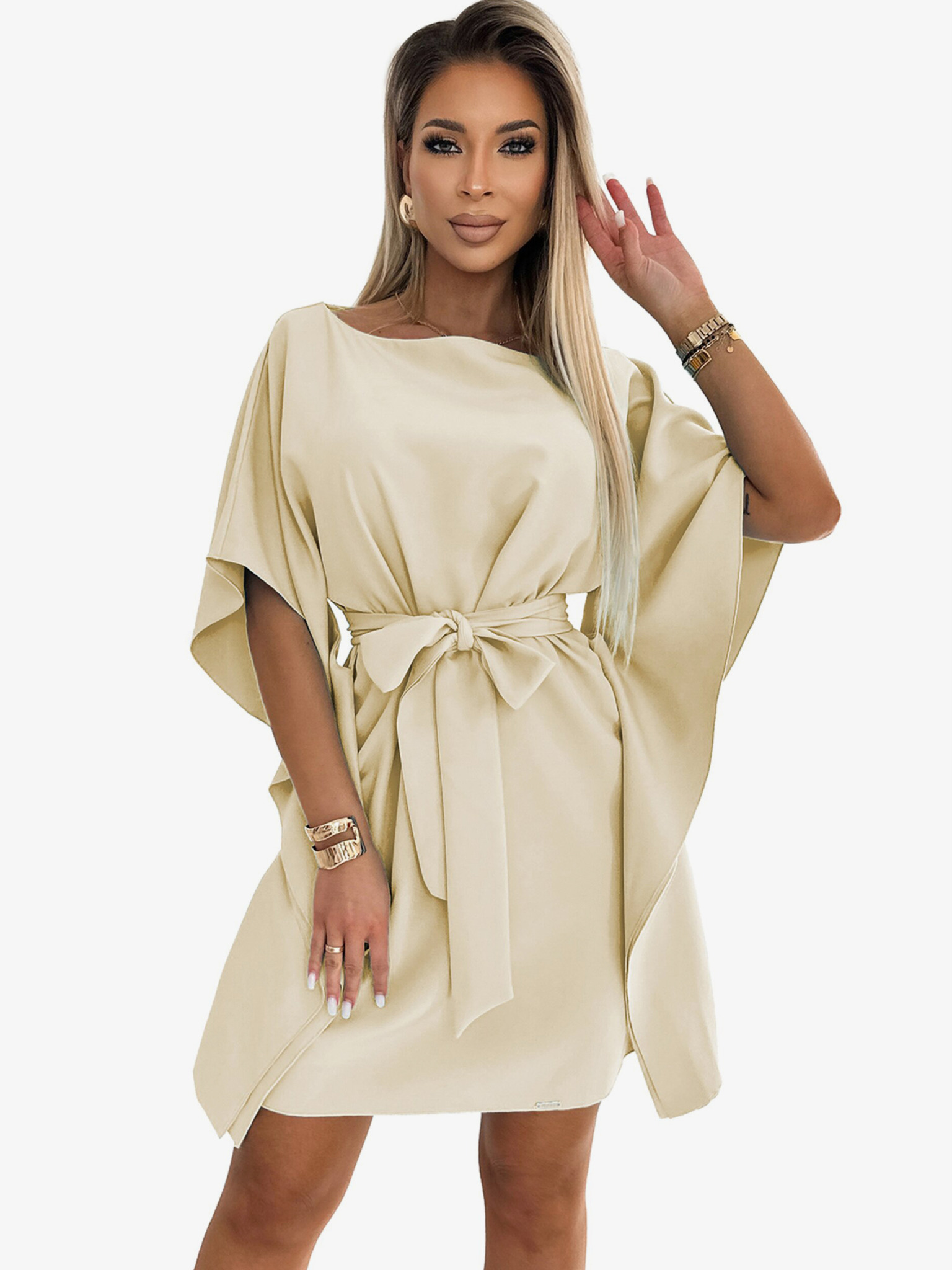 Obleka z izrezom in kratkimi rokavi - bež Numoco MATILDE