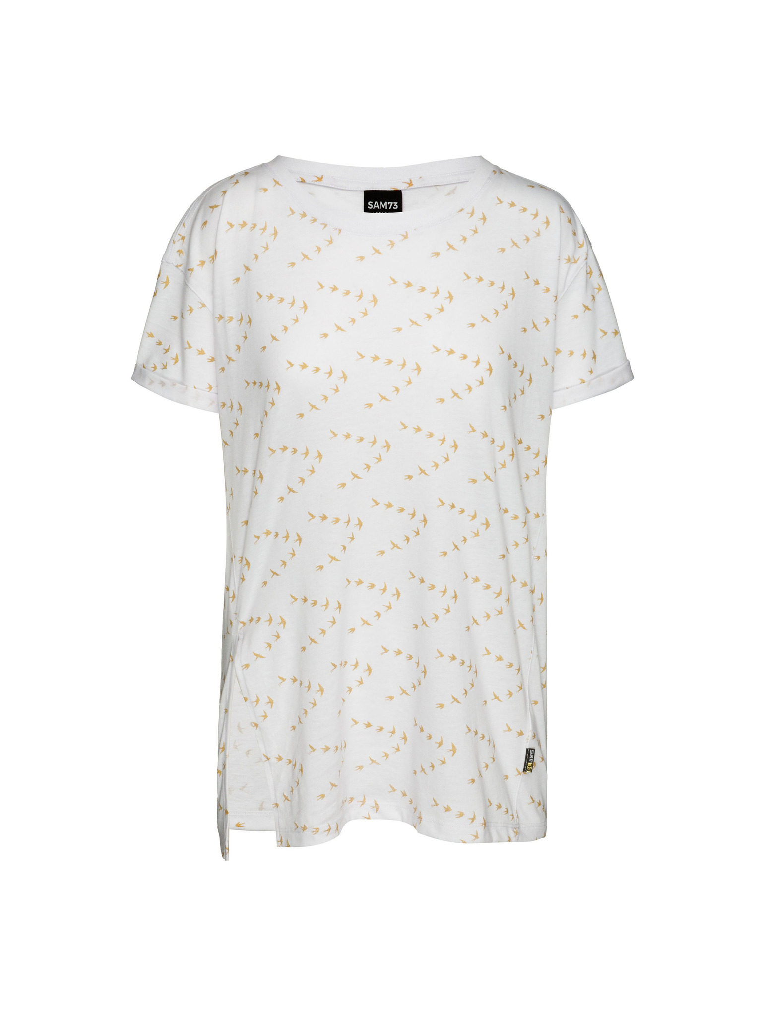 Bela ženska majica z vzorcem SAM 73